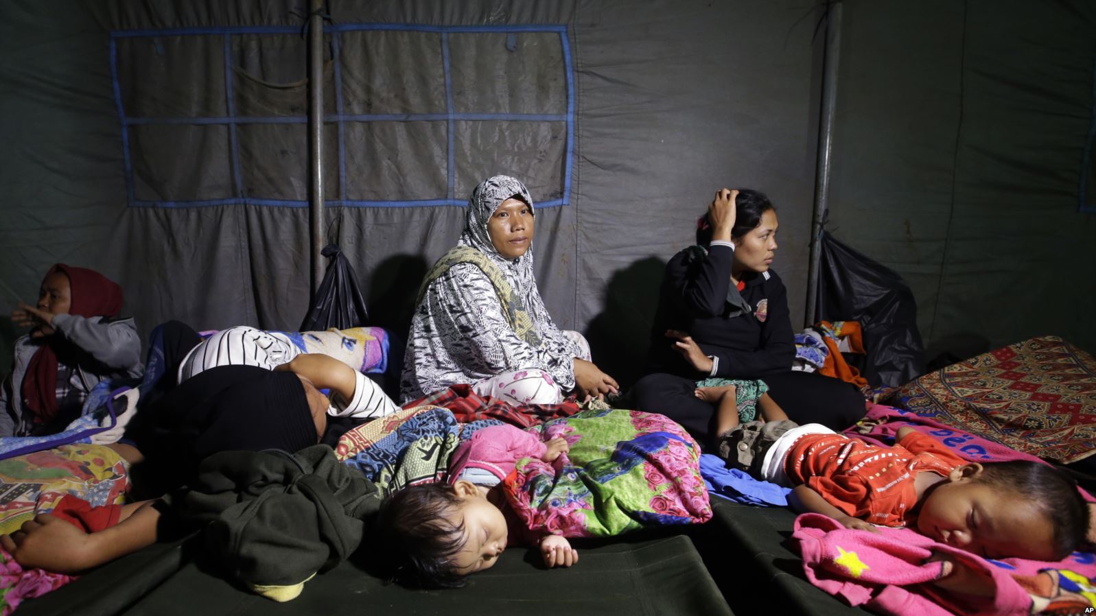 Suepervivientes del tsunami se refugian en un albergue temporal en Tanjung Lesung, Indonesia, el 23 de diciembre del 2018.