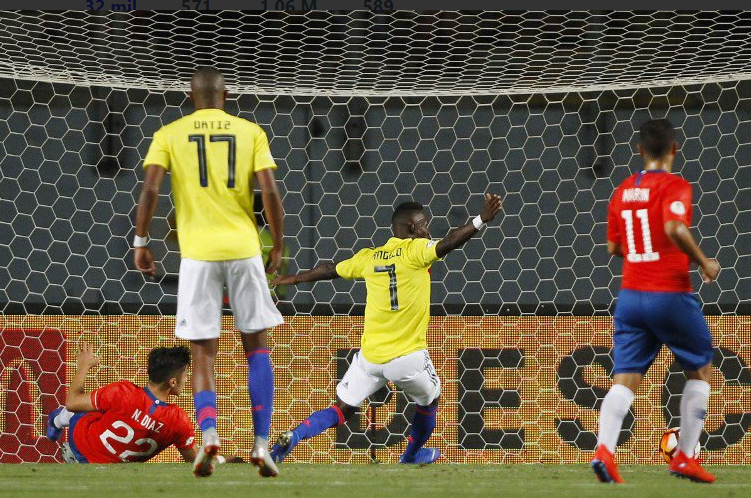 El último partido de Colombia en esta fase de grupos terminó con demasiada fricción y más empuje que definición frente a los nervios de la defensa chilena. Con la eliminación a punto de consumarse, el defensor Cuesta empujó la pelota con un remate que se desvió en un rival.