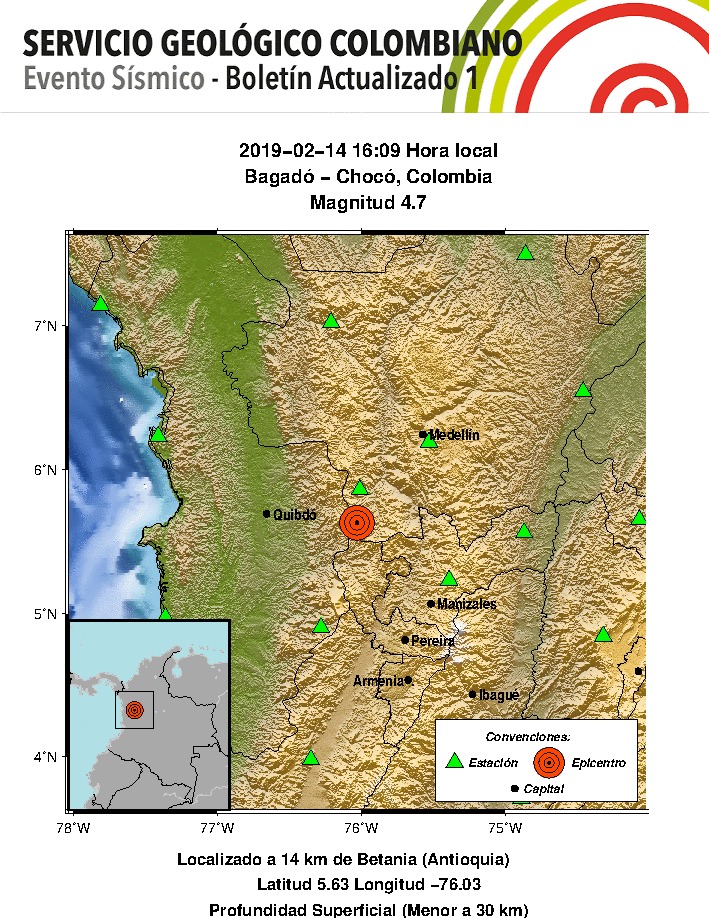 Se adelanta un registro en los sitios cercanos al epicentro (Bagadó), especialmente en Lloró y Río Quito, donde se sintió con mayor intensidad, según explicó el director de Gestión de Riesgo de Chocó, Rafael Bolaños