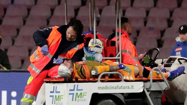 Ospina recibió un fuerte golpe en la cabeza en el minuto 4 del encuentro del estadio San Paolo tras un choque con el argentino Ignacio Pussetto, pero quiso seguir compitiendo con un vistoso vendaje en la cabeza, hasta desmayarse en el campo unos 35 minutos después.