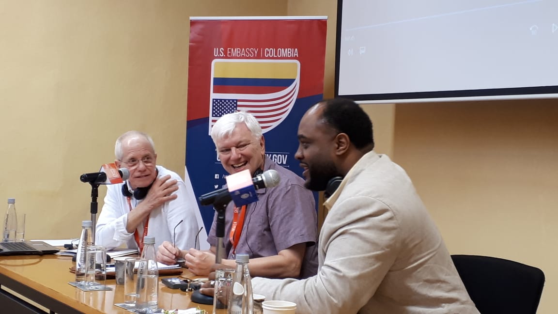 Jim: Yo creo que haría un documental acerca de algunos de los jóvenes que hemos conocido durante nuestra visita. La Embajada de los Estados Unidos en Bogotá y el American Film Showcase me ha dado la oportunidad de conocer personas que yo no habría conocido de otra manera, me encantaría que uno de estos realizadores audiovisuales colombianos, a medida que él o ella explora su propio país, me gustaría contar la historia de ese realizador audiovisual y porque están haciendo lo que están haciendo, y porque sienten que ellos deben compartir esa historia acerca de su propio país. Yo no creo que pueda contar la historia que ellos contarían, pero creo que sí podría contar una historia acerca de un realizador audiovisual.