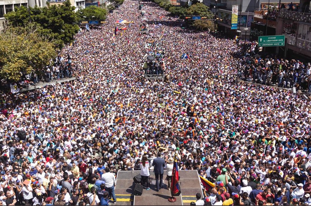 «Para terminar con la usurpación falta calle. El mundo nos va a ayudar, pero somos nosotros los que debemos de seguir en esta lucha para lograr la democracia en Venezuela», señaló Guaidó durante su discurso frente a miles de manifestantes que apoyan su gestión.