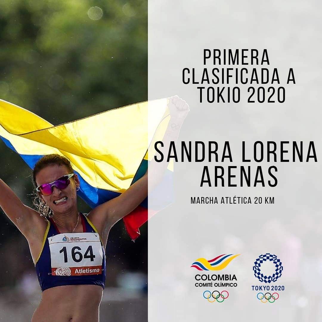 La marchista Sandra Arenas es la primera deportista colombiana que obtiene un cupo para las justas en la distancia de los 20 kilómetros que se desarrollarán en la capital japonesa, del 24 de julio al 9 de agosto.