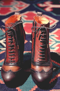 Sus zapatos formales con increíbles fusiones de cueros, tacones y plataformas hechas en madera, los distinguen en el mercado por la construcción artesanal de cada uno de sus diseños.