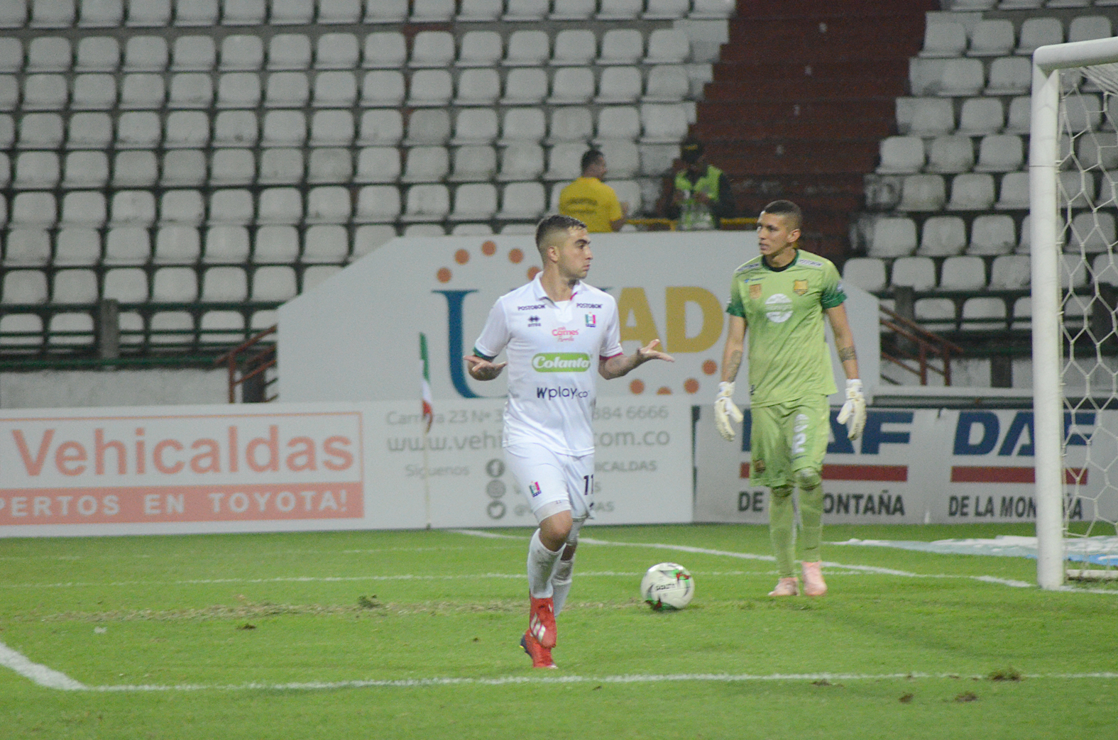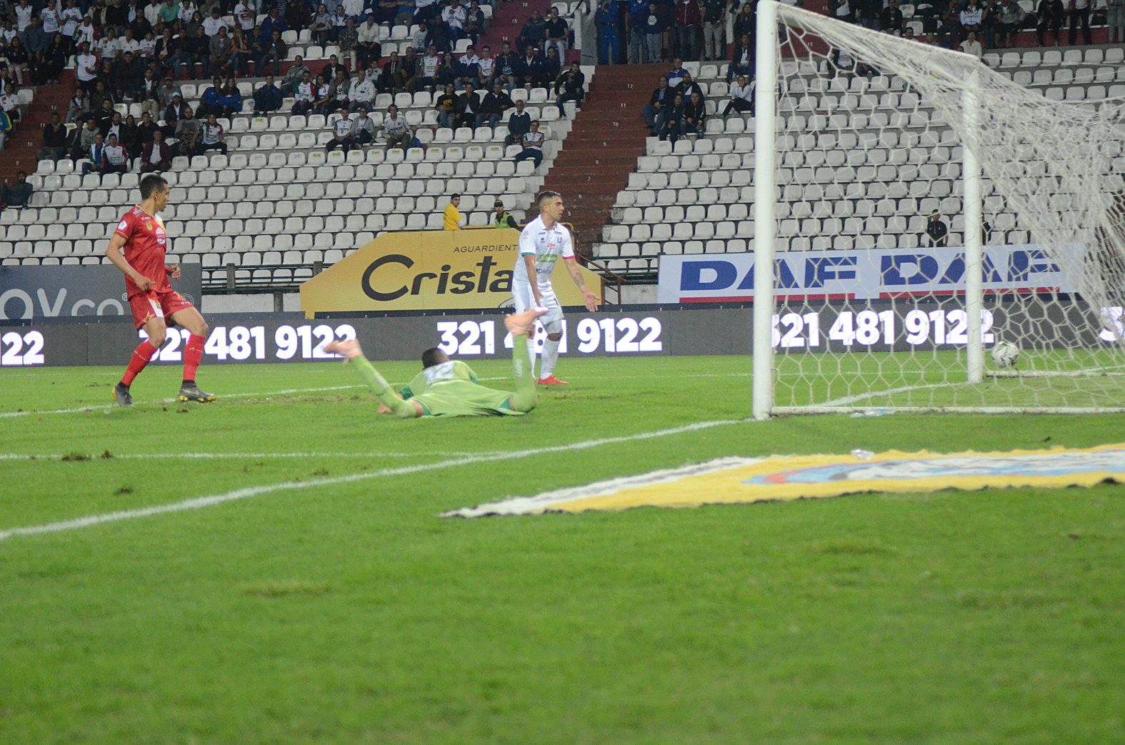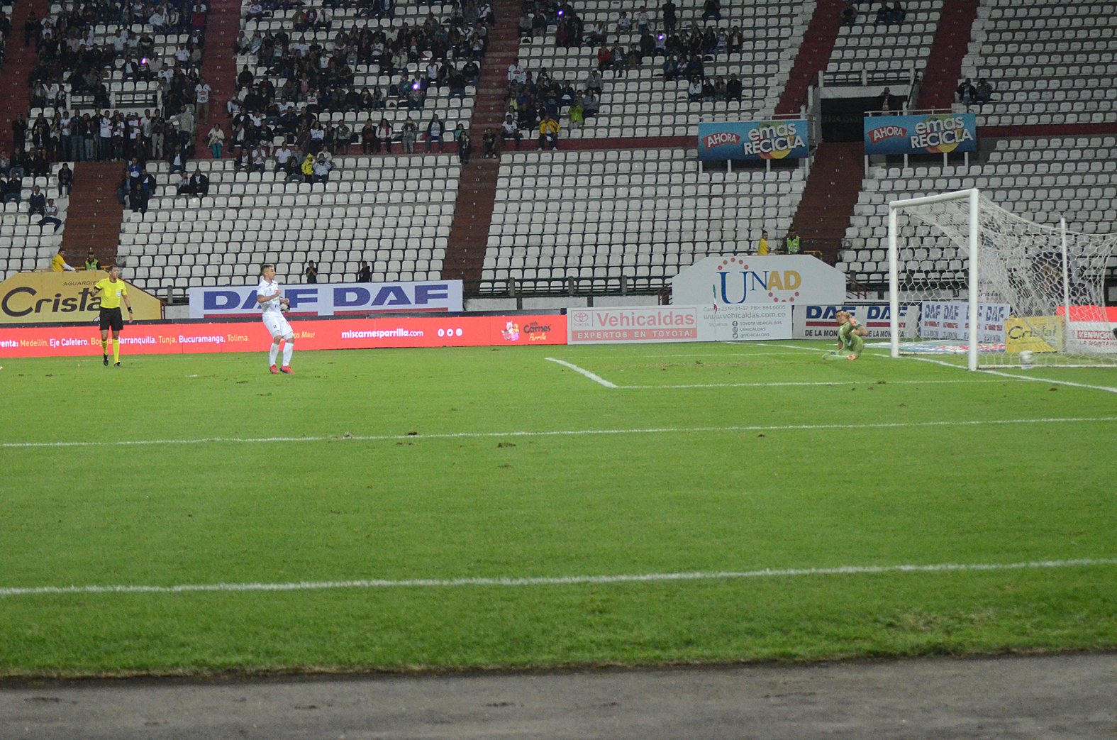En el tiempo de adición, el elenco manizaleño controló el partido y buscaba la oportunidad para definir el duelo. A los 93′ el volante Sebastián Guzmán le filtró un pase entre los defensas para Ménder García, quien había ingresado para el segundo tiempo y definió con frialdad ante la salida de Valencia para colocar el 2-0.