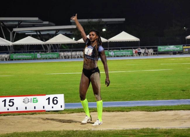 Ibargüen, que también es doble campeona mundial de triple salto, se alzó con la victoria en la prueba que se disputó en la pista del estadio Rafael Cotes de Barranquilla, mientras que Urrutia quedó en el segundo lugar y la ecuatoriana Luiba María Zaldívar fue tercera con un registro de 14,05 m.