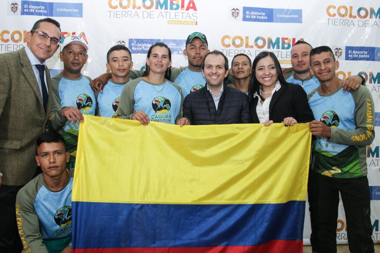El director de Coldeportes, Ernesto Lucena Barrero, fue el encargado de entregarles el pabellón nacional. “Ustedes mostrarán una cara diferente de Colombia. La vida es un remar constante y me complace entregar esta bandera que simboliza que después de la lucha armada, se puede construir un futuro a partir del deporte”, destacó el directivo sobre la delegación que competirá junto a otros 30 países del 13 al 20 de mayo en el continente oceánico.