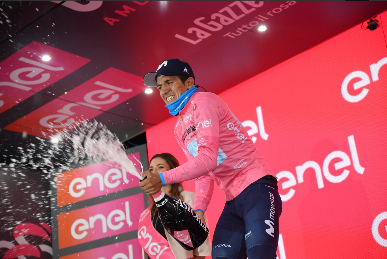 Asimismo, el ecuatoriano dueño por ahora de la ‘maglia rosa’, Richard Carapaz, recibió ataques de Vincenzo Nibali, que le alcanzó a sacar algunos segundos, pero el del Movistar recuperó el tiempo y de la mano de Mikel Landa, compañero de equipo, consiguió seguir firme y le sacó más de un minuto de ventaja a Primoz Roglic, quien se quedó relegado de los favoritos.