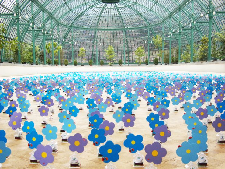 Durante los últimos años, Flores solares en movimiento se ha convertido en una obra icónica en todo el mundo. Se ha llevado a Estados Unidos, China, Singapur, Taiwán, Corea del Sur, Japón, Rusia, México, Brasil, Líbano, Marruecos, Bélgica, Países Bajos, Luxemburgo, Francia, Alemania, España, Italia, Dinamarca, Polonia, Hungría, Eslovenia, Estonia y Rumania.