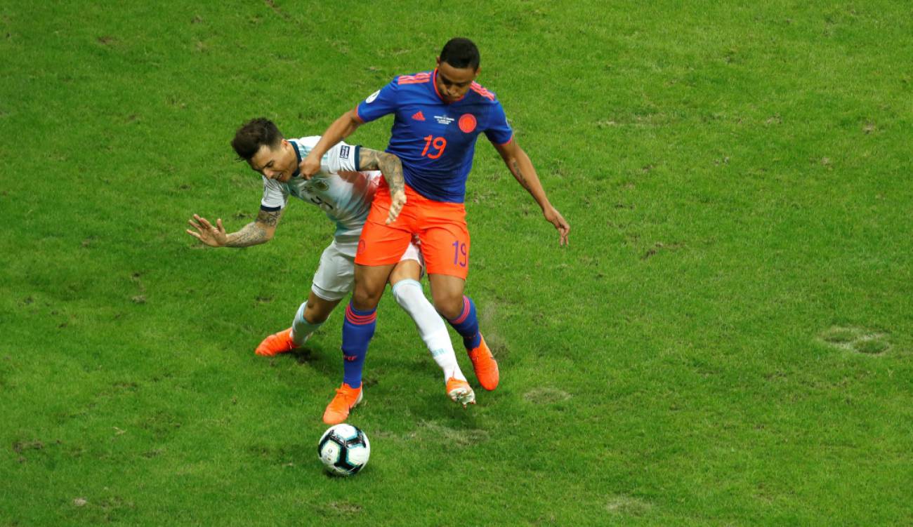 Muriel recibió una dura entrada de Leandro Paredes en el inicio del duelo, acción que el árbitro no sancionó como falta y que por poco termina en un gol de Sergio Agüero, tras una asistencia de Lionel Messi, quien no detuvo el juego pese al pedido de los jugadores colombianos.