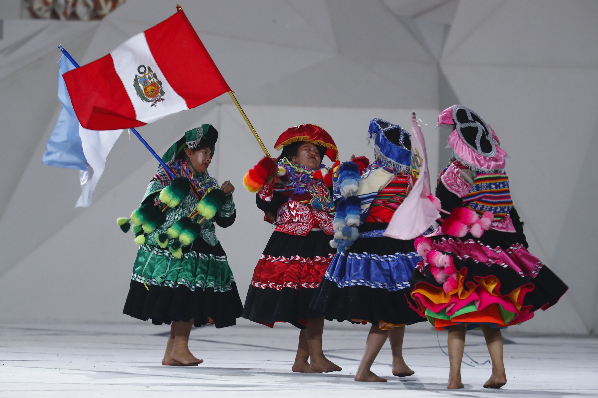 Brillo creativo en el acto encabezado por el presidente del Perú, Martín Vizcarra, su homólogo de Bolivia, Evo Morales, y los titulares del Comité Olímpico Internacional, Thomas Bach, y de la entidad regional Panam Sports, Neven Ilic.