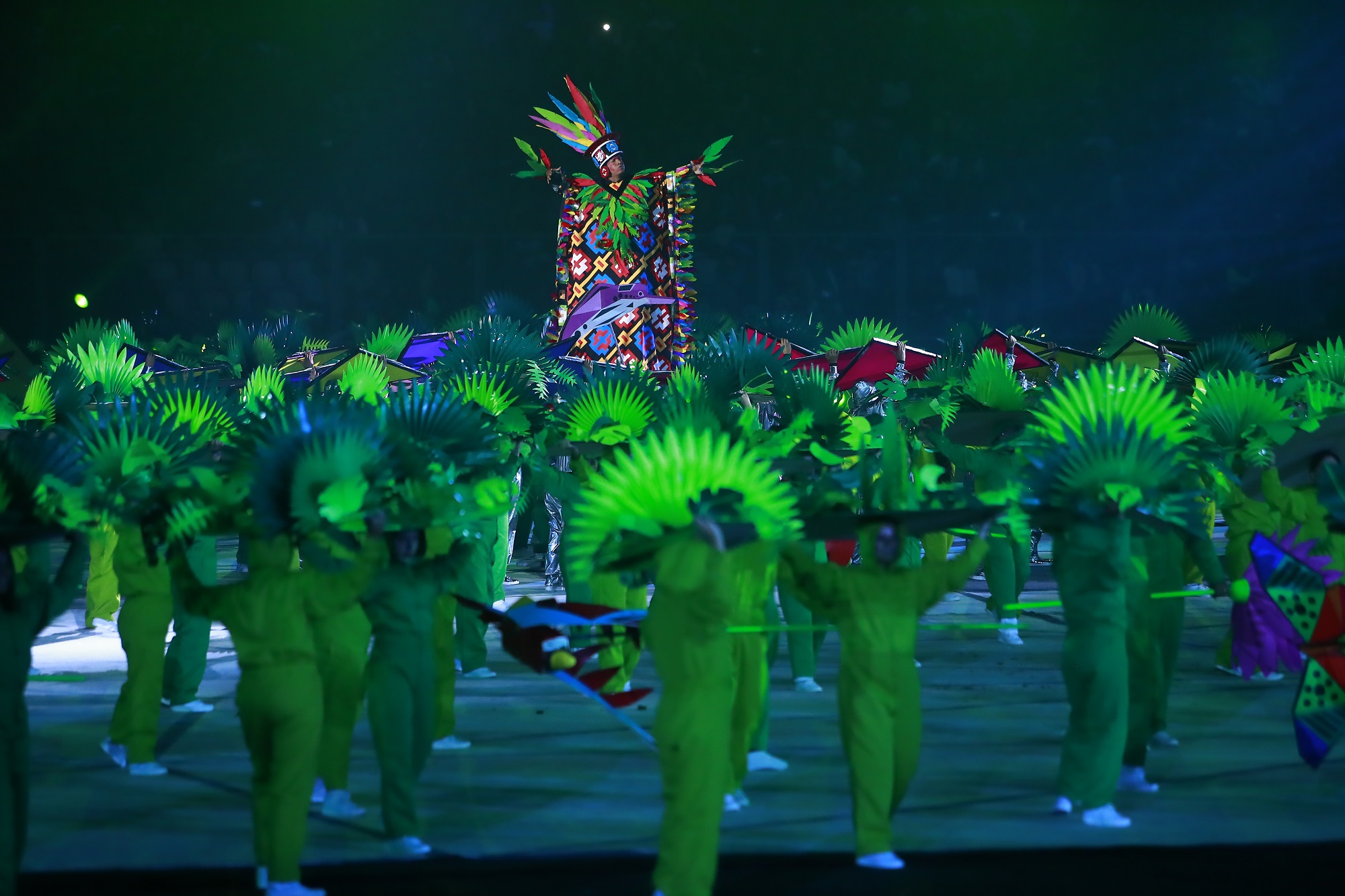 Derroche de alegría, danza, vistosos trajes y música deleitaron a los presentes, algo más de la mitad del aforo de la instalación, alrededor de 40 mil personas, y momentos sublimes en una ceremonia que debió ser una joya para la televisión.