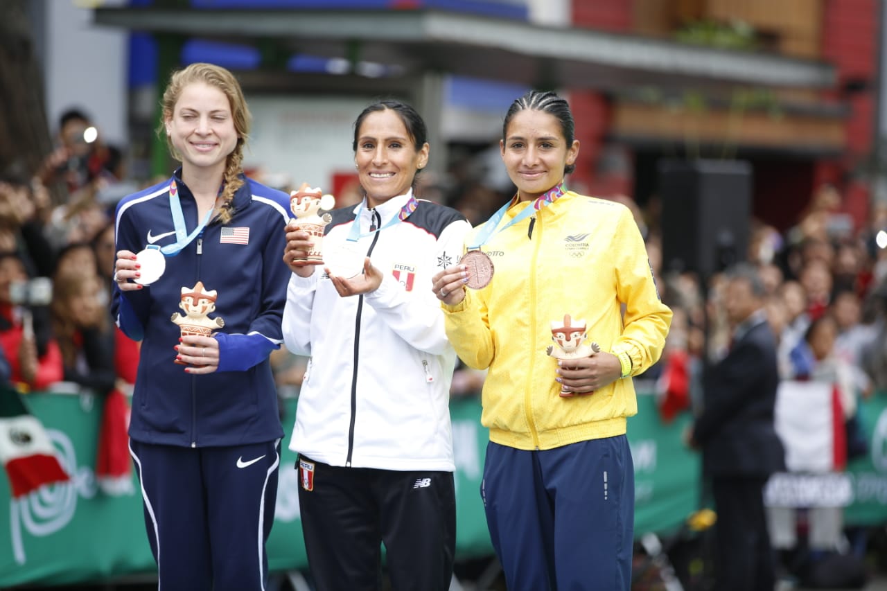 Desde el inicio de la carrera las ganadoras de las medallas panamericanas se mantuvieron liderando el grupo de participantes, pero a mitad de la prueba la peruana empezó a marcar distancia, a mantener un ritmo constante y a asegurar el lugar más alto del podio. La colombiana siguió luchando por estar cerca. A esa altura la desventaja de la nuestra era de solo 10 segundos.
