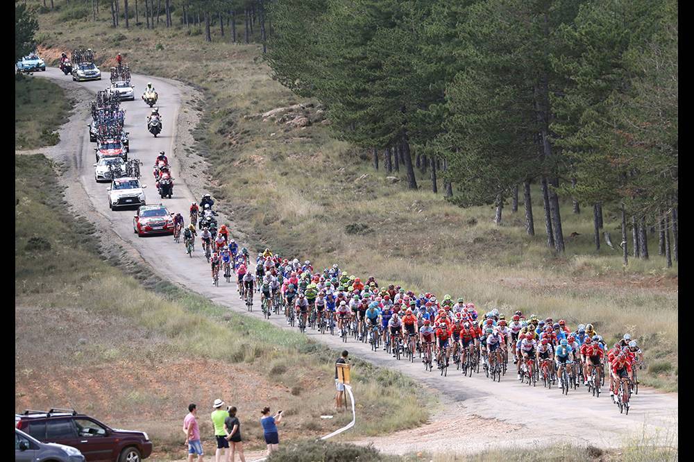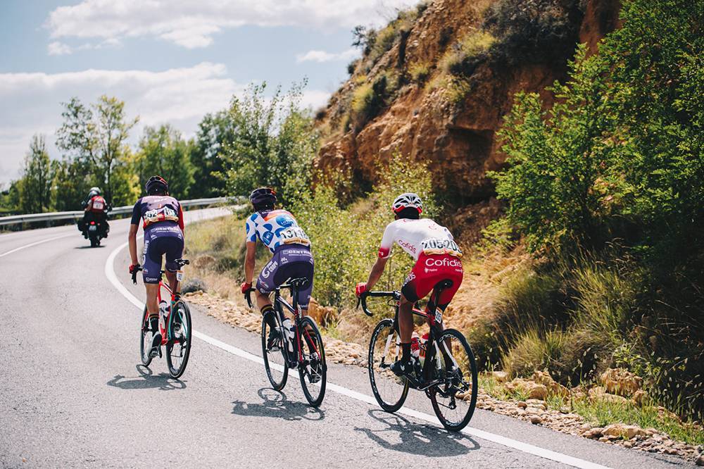 La diferencia de los fugados con respecto al pelotón creció paulatinamente hasta rebasar los diez minutos. La entente delante era buena y permitió a Madrazo sumar el máximo de puntos en el Puerto de Alcublas (2ª, km 31,7) y el Alto de Fuente de Rubielos (3ª, km 98,6), blindando así su liderato en la clasificación de la Montaña. Su compañero Bol, por su parte, pasó primer por Manzanera (SI, km 135). Detrás, Team Sunweb marcaba un ritmo tímido, sin intención de cazar. Mediada la etapa, UAE Team Emirates trató de alterar la situación tirando unos 25 kilómetros. Sin embargo, no hubo continuidad ni colaboración por parte de otros equipos. “La escapada necesitará cinco minutos de ventaja al pie del último puerto para imponerse”, predijo José Cabedo, director de Burgos BH. Pues bien: los fugados llegaron a ese hito con 6’55” y licencia para soñar.