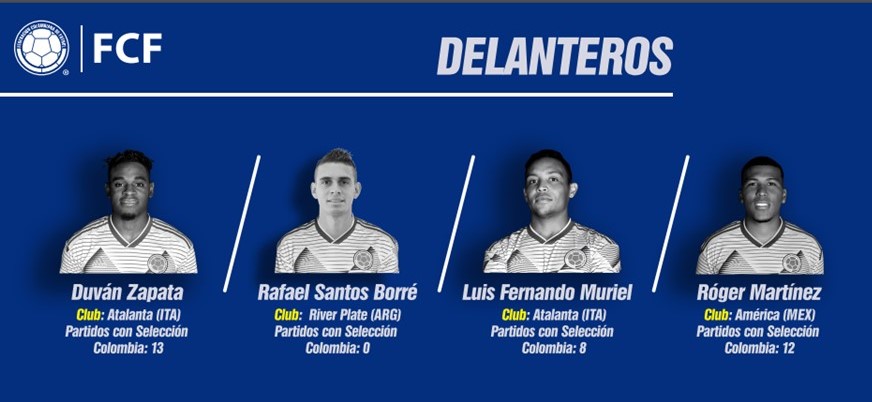 Por su parte, otra novedad es el llamado del delantero de River Plate, Rafael Santos Borré, quien viene teniendo una buena temporada con el conjunto argentino, tanto en el torneo local como en la Copa Libertadores en la cual ha marcado goles importantes.