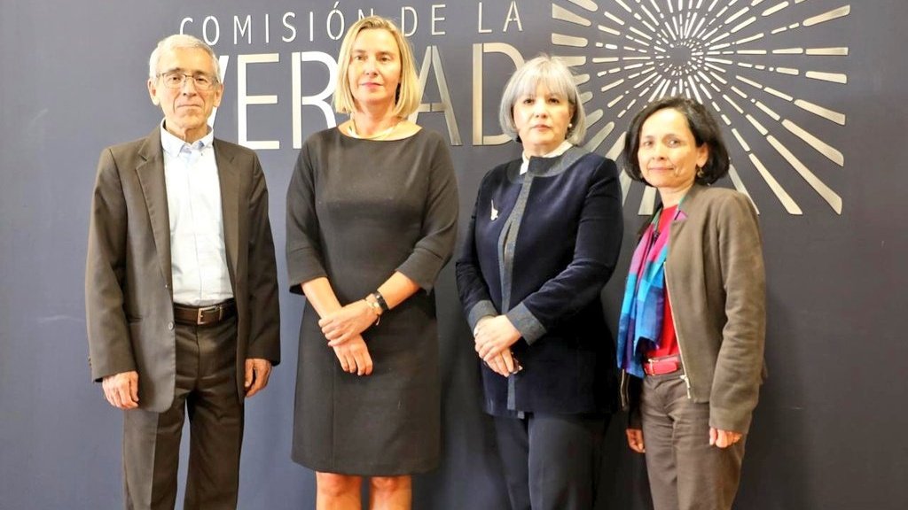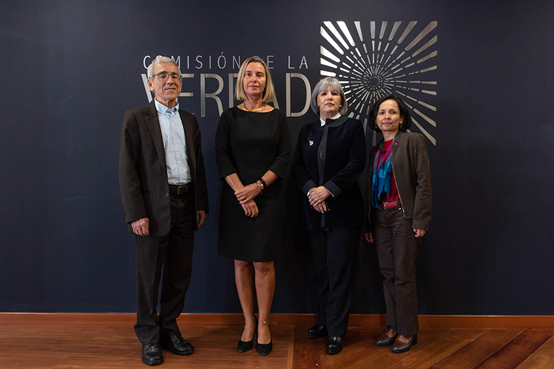 En su paso por la Comisión de la Verdad, se reunió con el presidente de la entidad, Francisco De Roux; Luz Marina Monzón, directora de la Unidad de Búsqueda de Personas dadas por Desaparecidas; y Patricia Linares, presidenta de la Jurisdicción Especial para la Paz; allí Mogherini expresó que el sistema del que hacen parte las tres entidades es una “referencia para otros futuros acuerdos de paz”.
