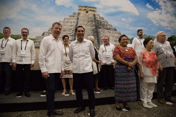 En un acto que tuvo por sede el Centro Internacional de Congresos de esa ciudad mexicana, el expresidente de Colombia y premio nobel de la Paz 2016, Juan Manuel Santos, dijo a nombre de los participantes que no van a desfallecer en la búsqueda de la paz.