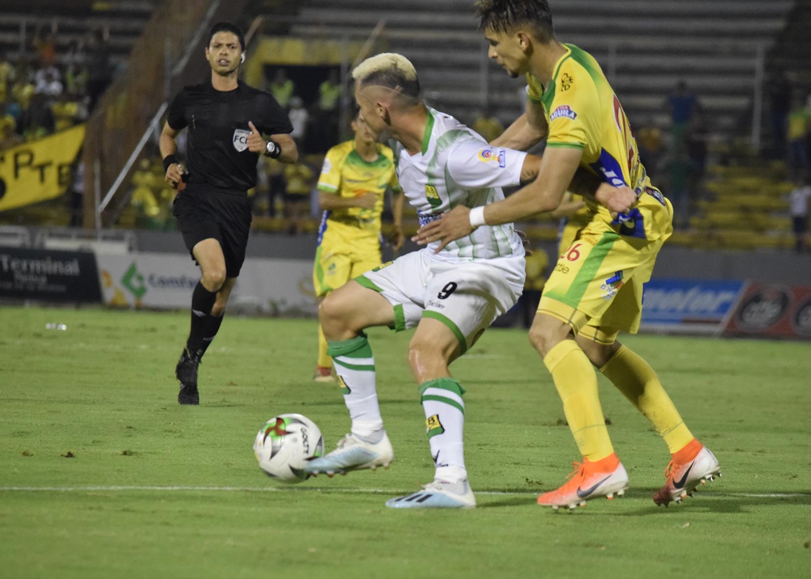 Ya sobre los 24 minutos fue amonestado Jean Carlos Pestaña del local y cuatro minutos más tarde se salvó el local del segundo en una jugada colectiva en la que Bucaramanga al final no tuvo definición y envío el balón por encima del arco de Giovanny Banguera.