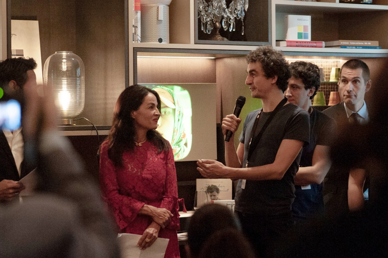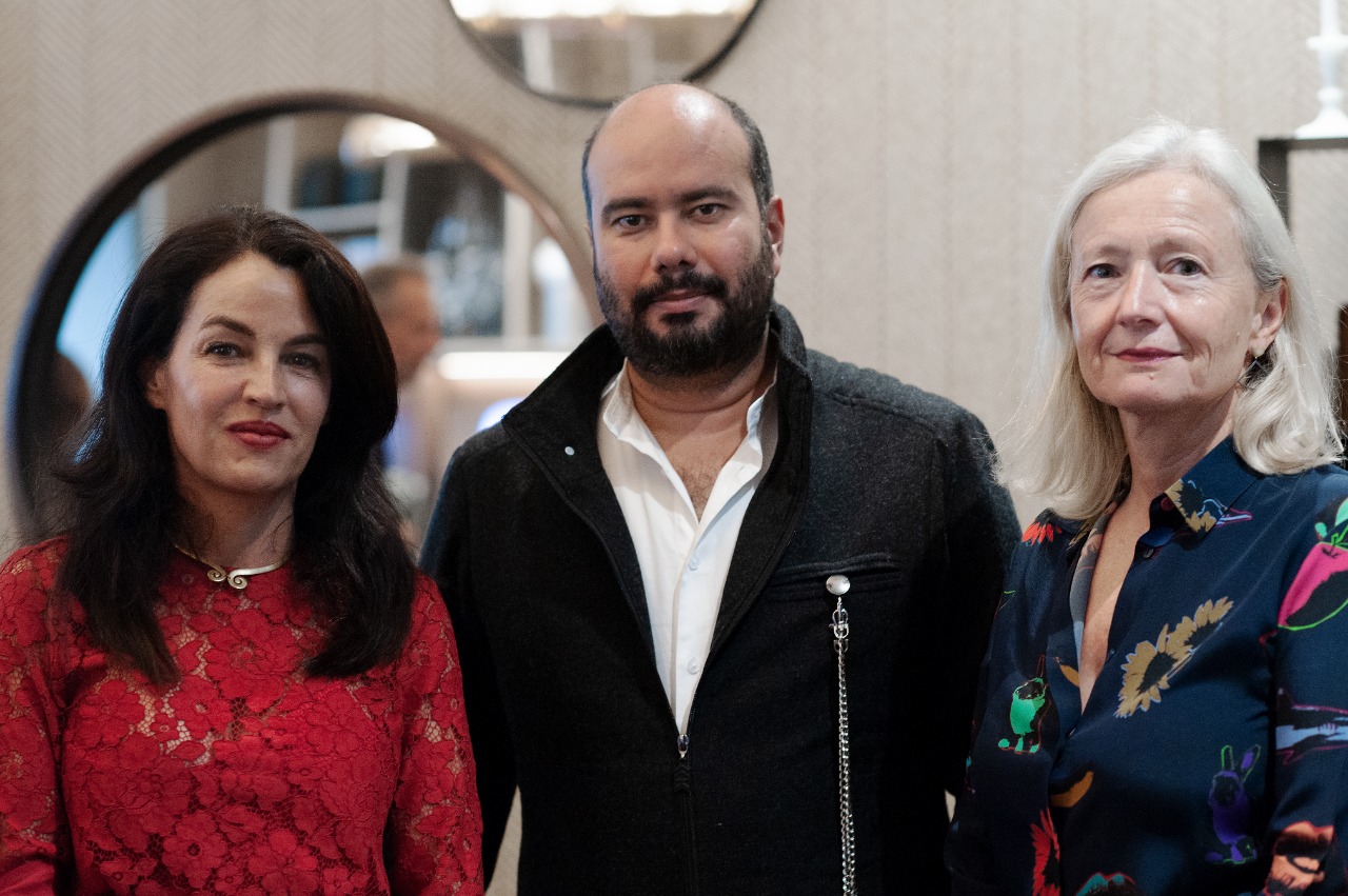La embajadora Sofía Gaviria, Ciro Guerra y Christine Duvoisin, esposa del CEO de Nespresso, durante la gala de Colombia en el Festival de Cine de Zurich