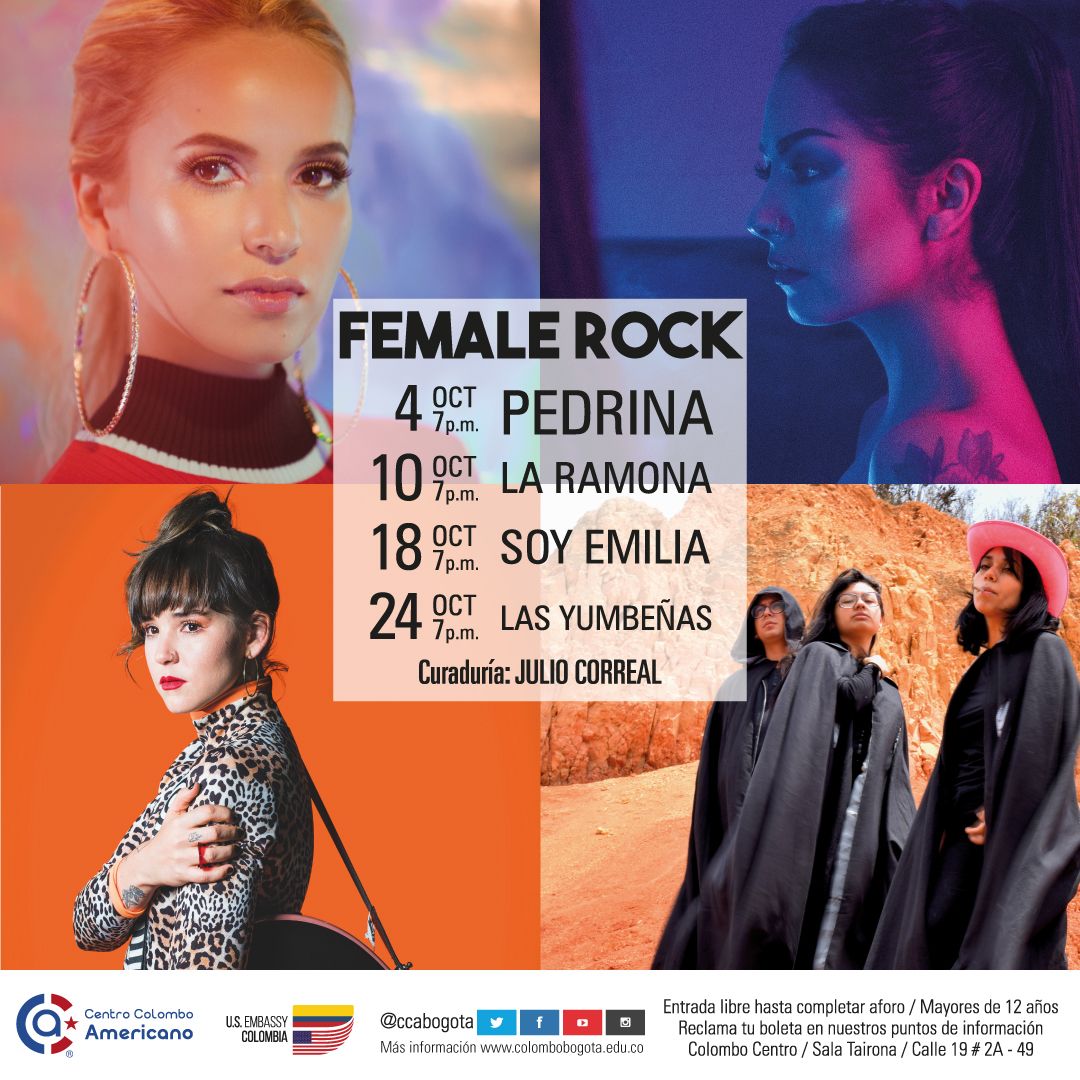 Para este año, la curaduría se enfoca en abrir un espacio a mujeres que interpretan este género. La finalidad de este ciclo es romper los esquemas y mostrar la participación de la mujer colombiana en el rock. Por ello, llegan a esta edición “Female Rock”, cuatro artistas: Pedrina, La Ramona, Soy Emilia y Las Yumbeñas.