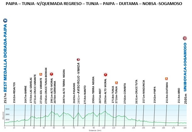 RECORRIDO: PAIPA – DUITAMA – LA Y – TIBASOSA – SOGAMOSO – NOBSA – LA Y (4 VUELTAS Y FINAL DUITAMA)