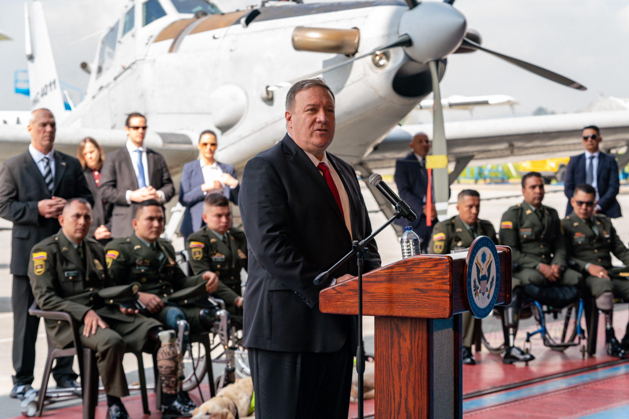 Bogotá, 21 de enero_ RAM_ Este martes, desde la Dirección Nacional de la Policía Antinarcóticos, el Secretario de Estado de Estados Unidos, Mike Pompeo, manifestó un completo respaldo de su país a los esfuerzos del Gobierno del Presidente Iván Duque en la lucha contra el problema mundial de las drogas.