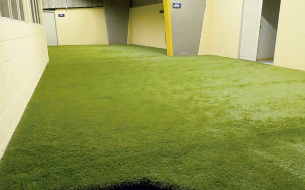 *Los camerinos ya están casi listos. Están cambiando los bancos o sillas utilizadas por los futbolistas cerca a la cancha.