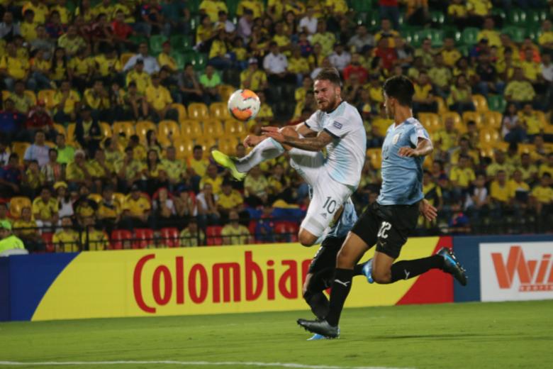 Bucaramanga, 03 de febrero_ RAM_ En busca de uno de los dos boletos para Tokio 2020, la Selección argentina venció 3-2 en Bucaramanga a su par de Uruguay, por el cuadrangular final del Preolímpico Sub 23 que se disputa en Colombia. Alexis Mac Allister (marcó dos, uno en cada tiempo) y Fausto Vera anotaron para el vencedor; descontaron en el complemento Juan Ramírez y Matías Arezo. El conjunto de Fernando Batista obtuvo así su quinto triunfo al hilo en el torneo.