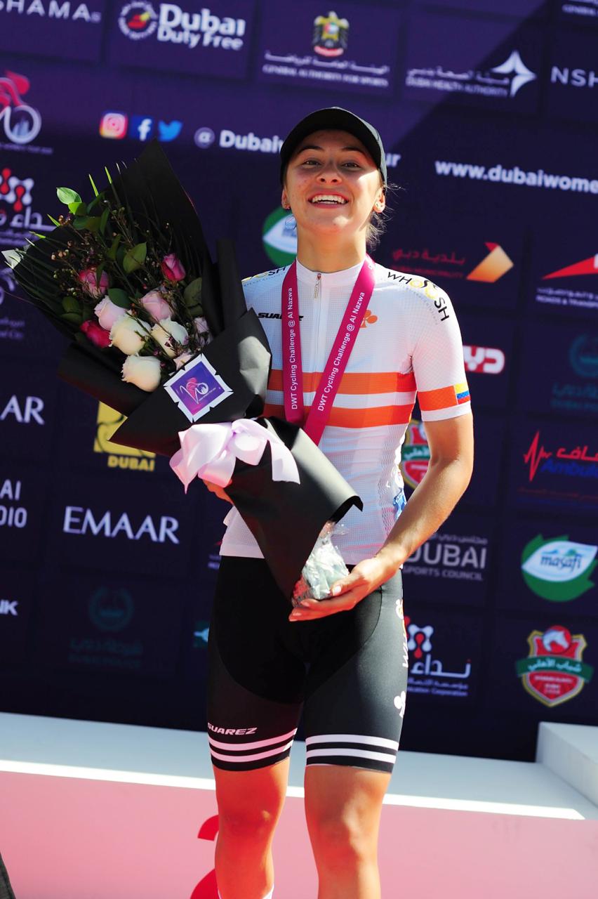 La antioqueña, que hace parte del equipo Colnago CM Team, llega a la última etapa del Tour siendo líder de la clasificación de las jóvenes y con posibilidades de quedar en el podio este jueves, con la última etapa sobre 112 Km, con llegada al Dubai Festival City.