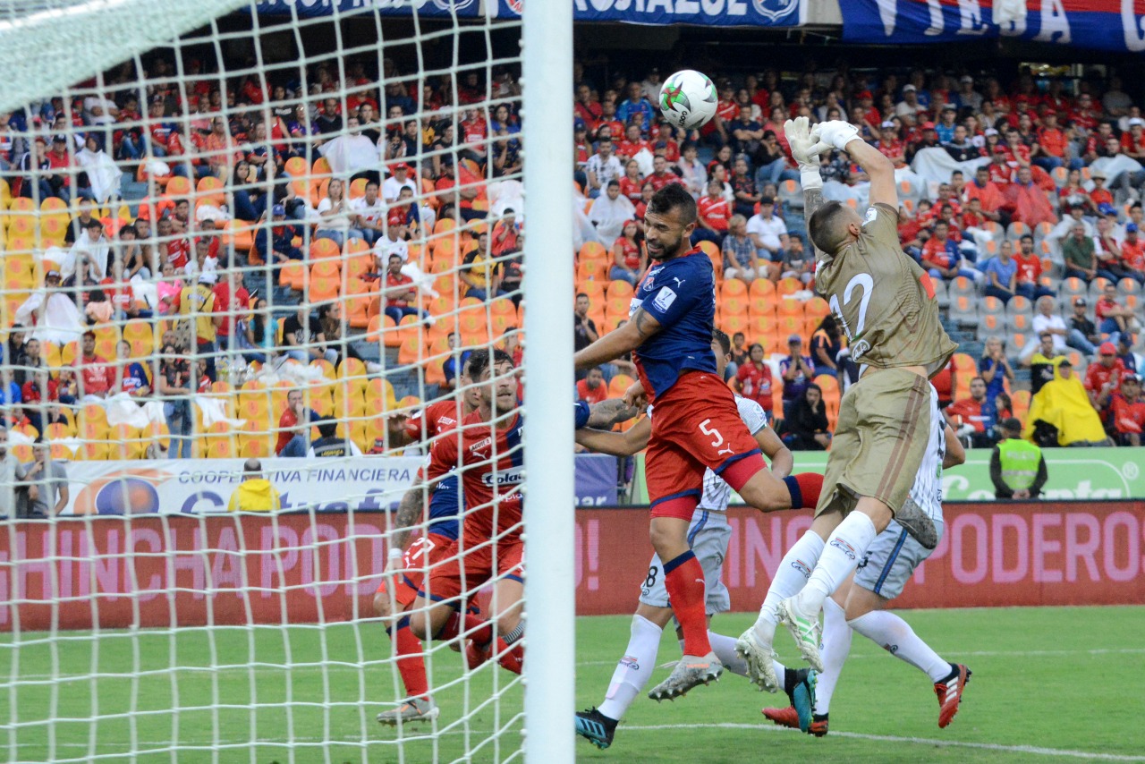 Al minuto 17, cuando la lluvia arreciaba en el máximo escenario deportivo de la capital antioqueña, apareció la primera alegría para la parcial roja, en el cobro de un tiro de esquina, el capitán Andrés Ricaurte levanta el balón al primer palo y allí apareció Andrés Cadavid, quien se desprendió en diagonal desde el centro para interceptarlo con su cabeza en el recorrido y enviarlo al fono de la red para cantar el 1-0.