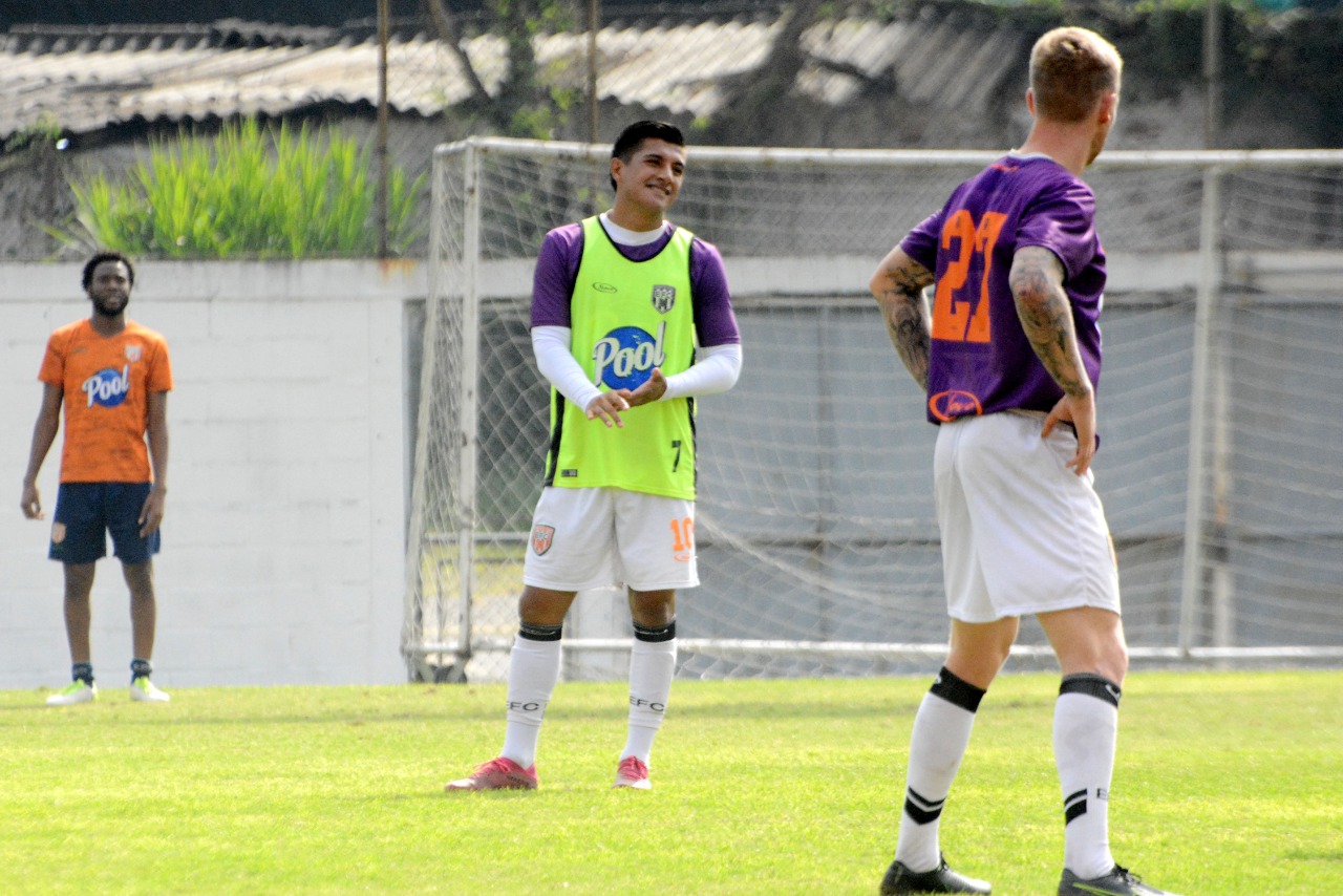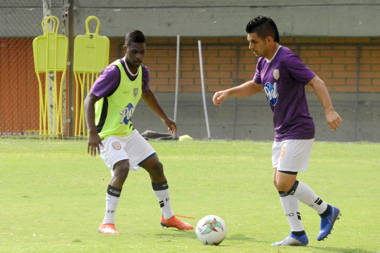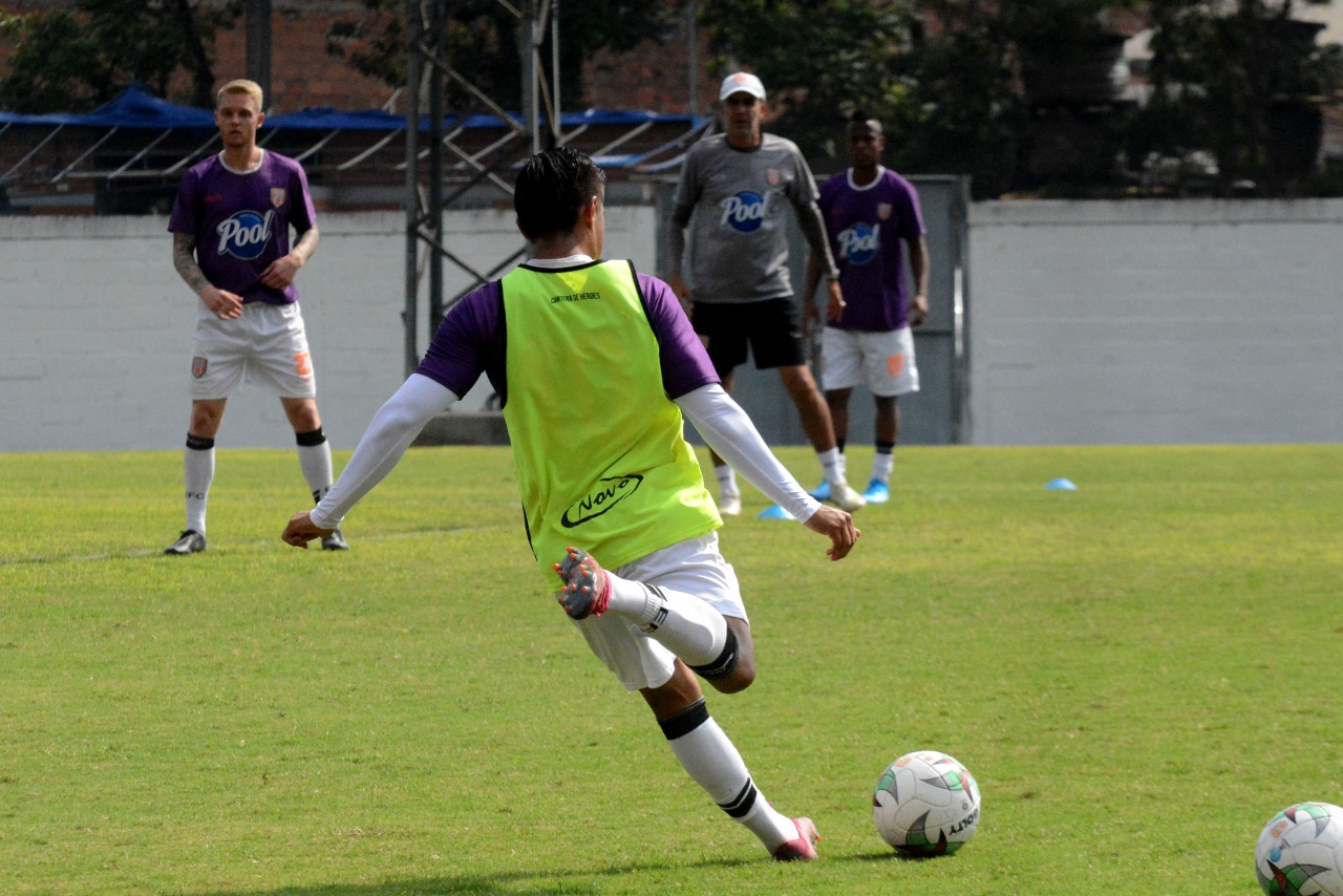 Jorge Aguirre (morado) regresó al Envigado Fútbol Club a aportar su cuota de experiencia.