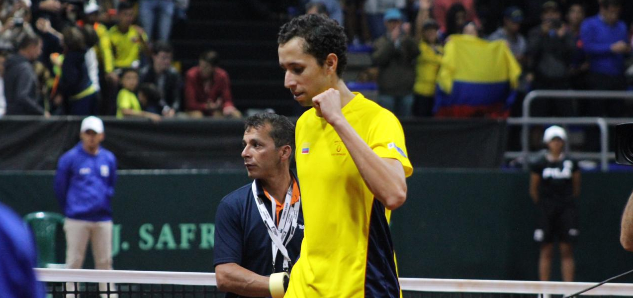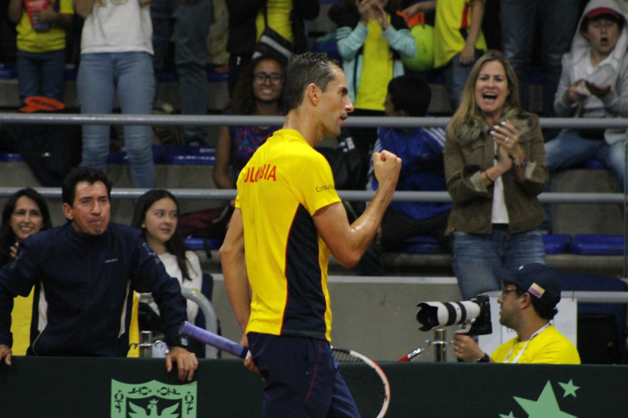Bogotá, 06 de marzo_ RAM_ La primera piedra del camino de regreso hacia Madrid está puesta. Este viernes, en la apertura de la serie de la Davis Cup by Rakuten Qualifiers entre el Equipo Colombia Colsanitas y Argentina, Daniel Galán celebró la primera victoria de la jornada para los dueños de casa, luego de imponerse sobre Leonardo Mayer con parciales de 6-1 y 6-4 tras una hora y 17 minutos de juego.