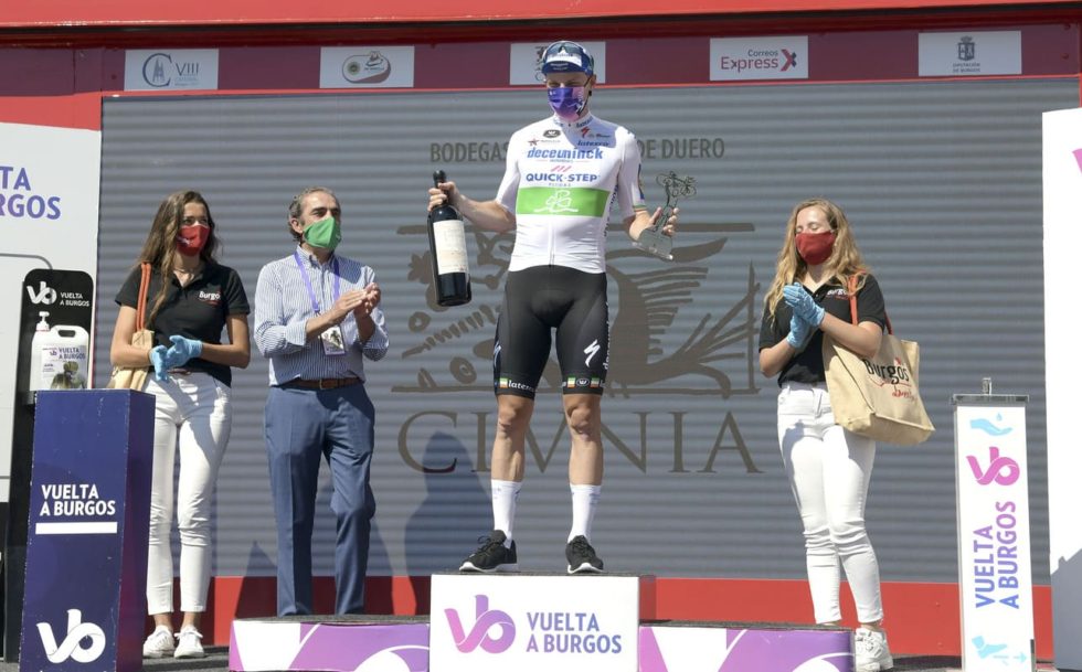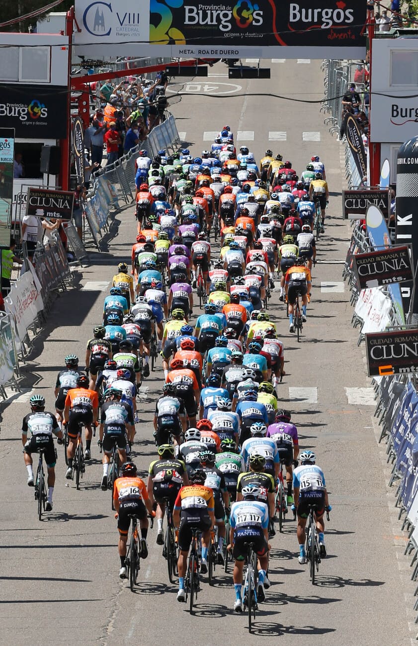Roa de Duero, 31 de julio_ RAM_ A Sam Bennett no le van mal las llegadas con algo de exigencia y así lo demostró este viernes en la meta de Roa de Duero. El del Deceuninck aceleró en el momento justo, cuando en el pelotón varios corredores se fueron al suelo, y entró solo en meta logrando su tercera victoria en suelo español en los últimos meses, después de sus dos triunfos en la Vuelta, incluido uno en Oviedo que también picaba hacia arriba. El campeón de Irlanda llegó exhauto por el tremendo esfuerzo final y el sofocante calor, y se tiró al suelo tras sumar el segundo triunfo del Deceuninck consecutivo. Hasta allí llegó el líder, Remco Evenepoel, para aplaudir a su compañero: «¡Felicidades!». El equipo belga suma 17 triunfos en 2020.