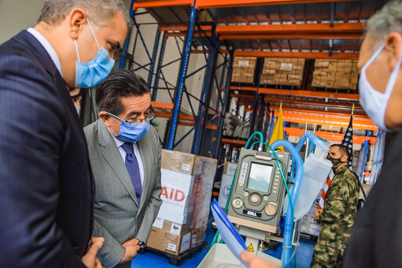 El presidente Iván Duque recibió del embajador de Estados Unidos Philip Goldberg200 ventiladores de alta generación ,los acompaña el Ministro de salud , Fernando Ruiz