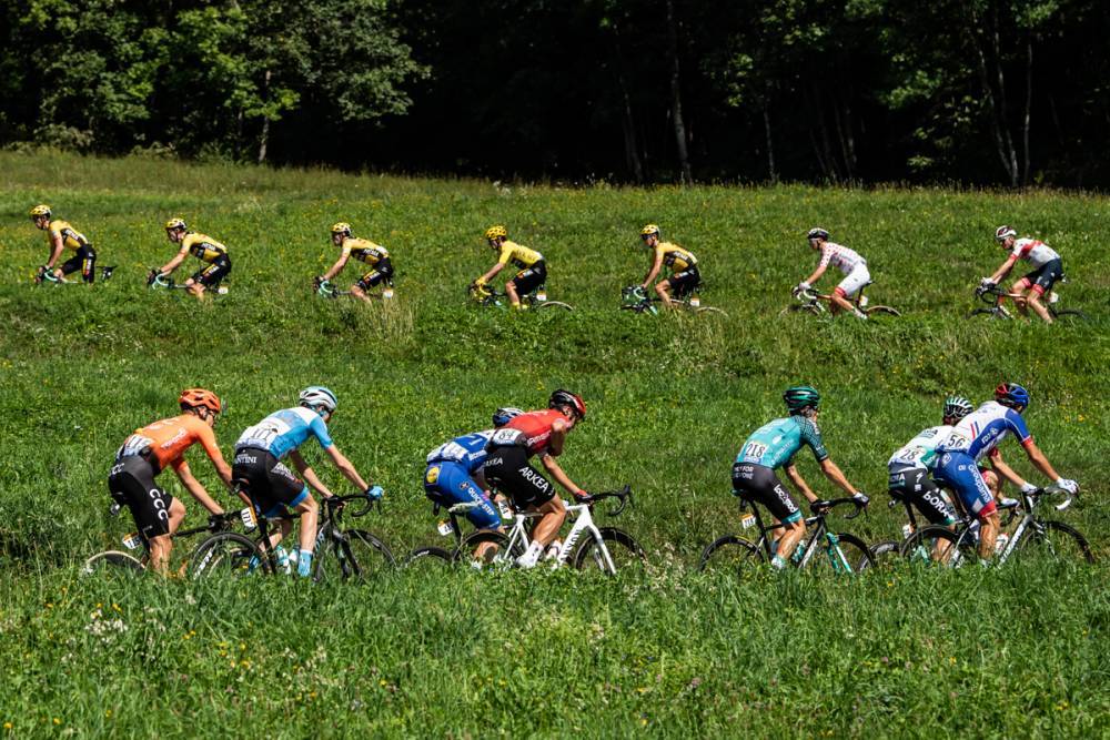 En el inmediato Col des Aravis (1ª, km 117,5), Edet se descolgaría y Carapaz coronaría primero. En esta cima se registró la ventaja máxima de la cabeza de carrera sobre el pelotón pacificado por Jumbo-Visma: 8’45”.