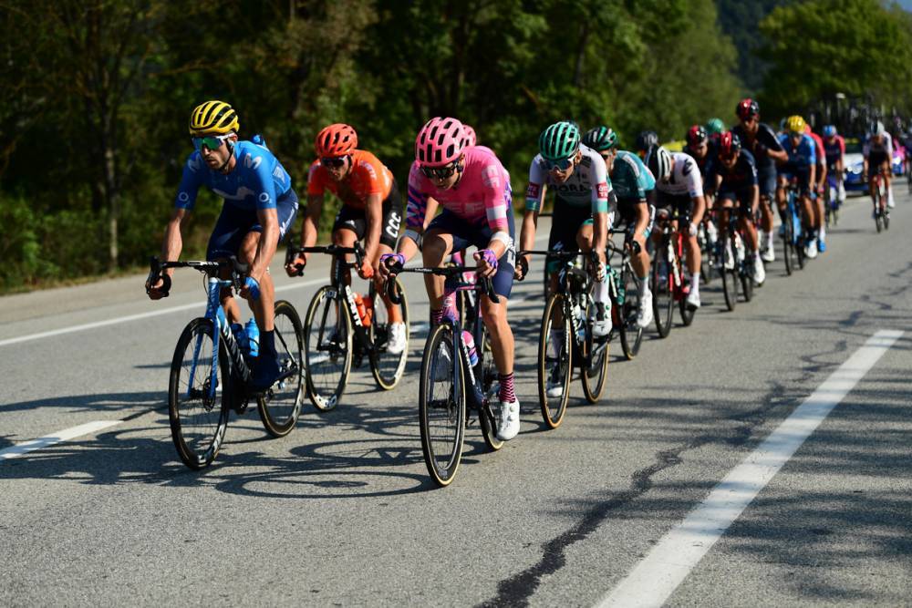 Al poco de fraguar la escapada, saltarían desde el pelotón un terceto con Tiesj Benoot, Casper Pedersen (Team Sunweb) y Pierre Rolland (B&B Hotels-Vital Concept), así como un quinteto conformado por Pavel Sivakov (Ineos Grenadiers), Neilson Powless (EF Education First), Simon Geschke (CCC Team), Mikel Nieve (Mitchelton-Scott) y Romain Sicard (Total Direct Energie). Los primeros alcanzarían la cabeza de carrera en el kilómetro 56; los segundos, en el 90. Y así quedó definida la escapada de 23 ciclistas que se jugaría la victoria.