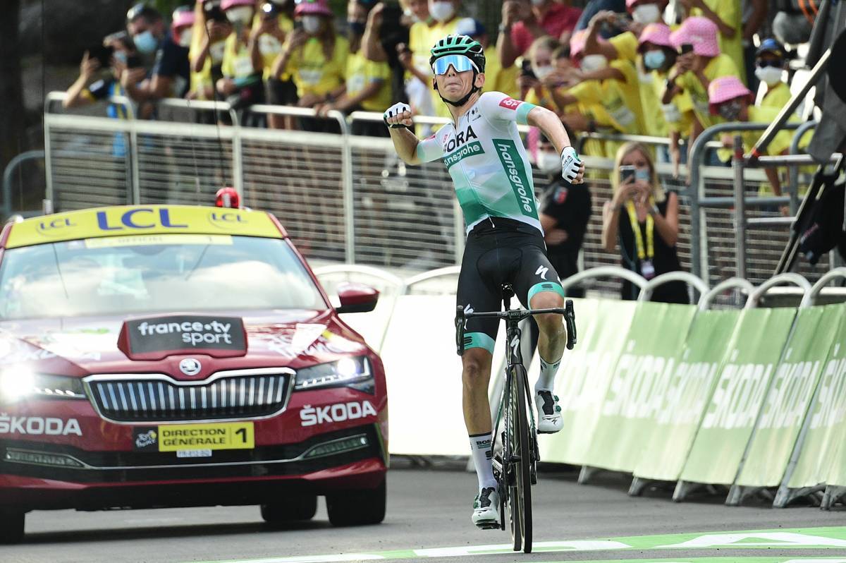 El ciclista de Bora-Hansgrohe doblegó a todo un ganador del Giro d’Italia como Richard Carapaz (Ineos Grenadiers) para apuntar el primer triunfo de su equipo en esta Grande Boucle en la que tantísimo ha trabajado en cabeza del pelotón sin llegara a alzar los brazos. No hubo novedades en la general, que continúa encabezada por Primoz Roglic (Jumbo-Visma).