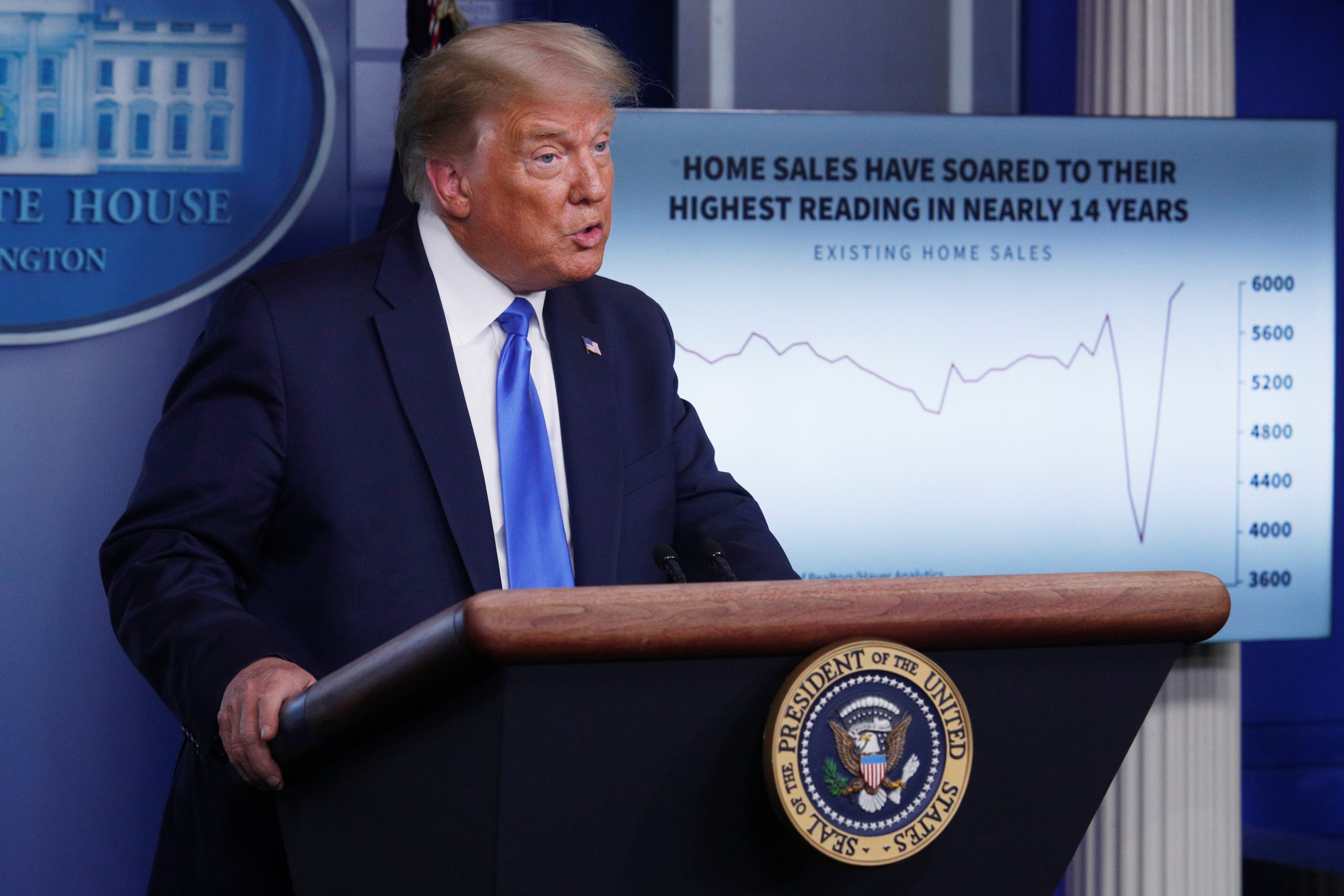 El presidente de Estados Unidos, Donald Trump, habla con los reporteros durante una conferencia de prensa en la Sala de Prensa Brady en la Casa Blanca REUTERS/Tom Brenner