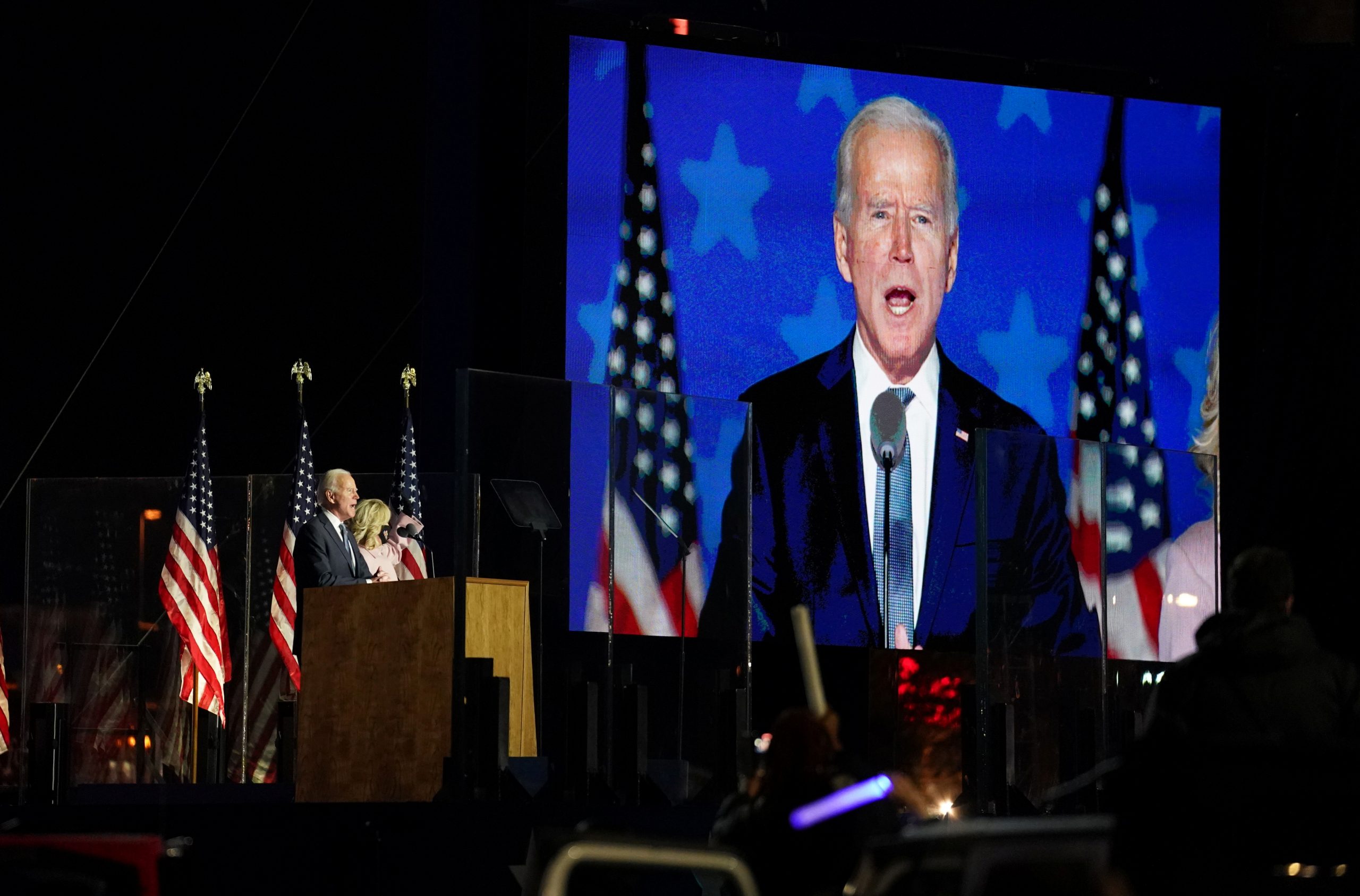 El martes del candidato demócrata a la presidencia, Joe Biden, hablando a sus seguidores en Wilmington, Delaware. Noviembre 3, 2020. REUTERS/Kevin Lamarque