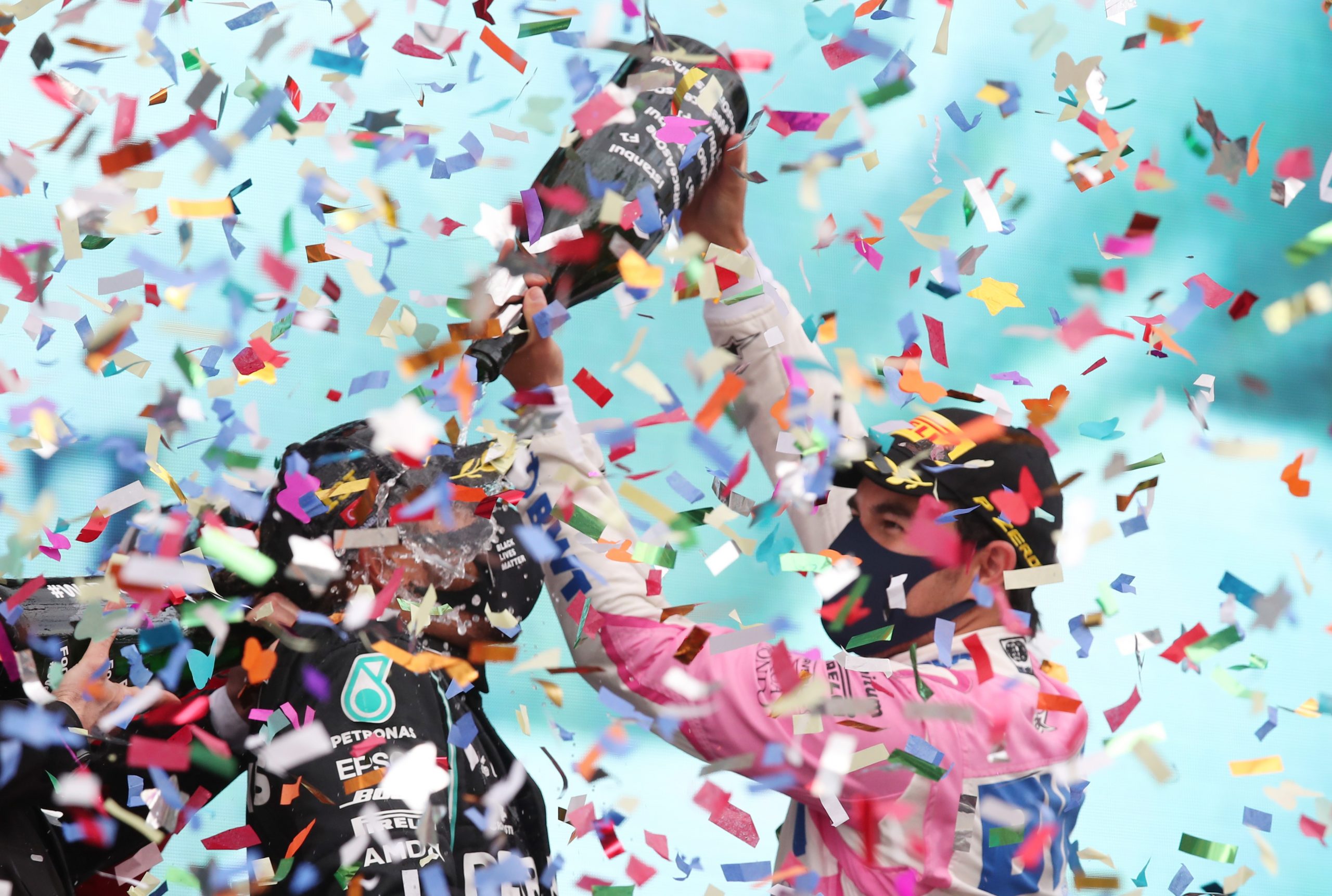 Poco después del final de la carrera, Hamilton fue felicitado por Pérez -que no tiene un asiento asegurado en la grilla para 2021-, y Sebastian Vettel, quien completó el podio con su Ferrari en una carrera llena de cambios de liderato.