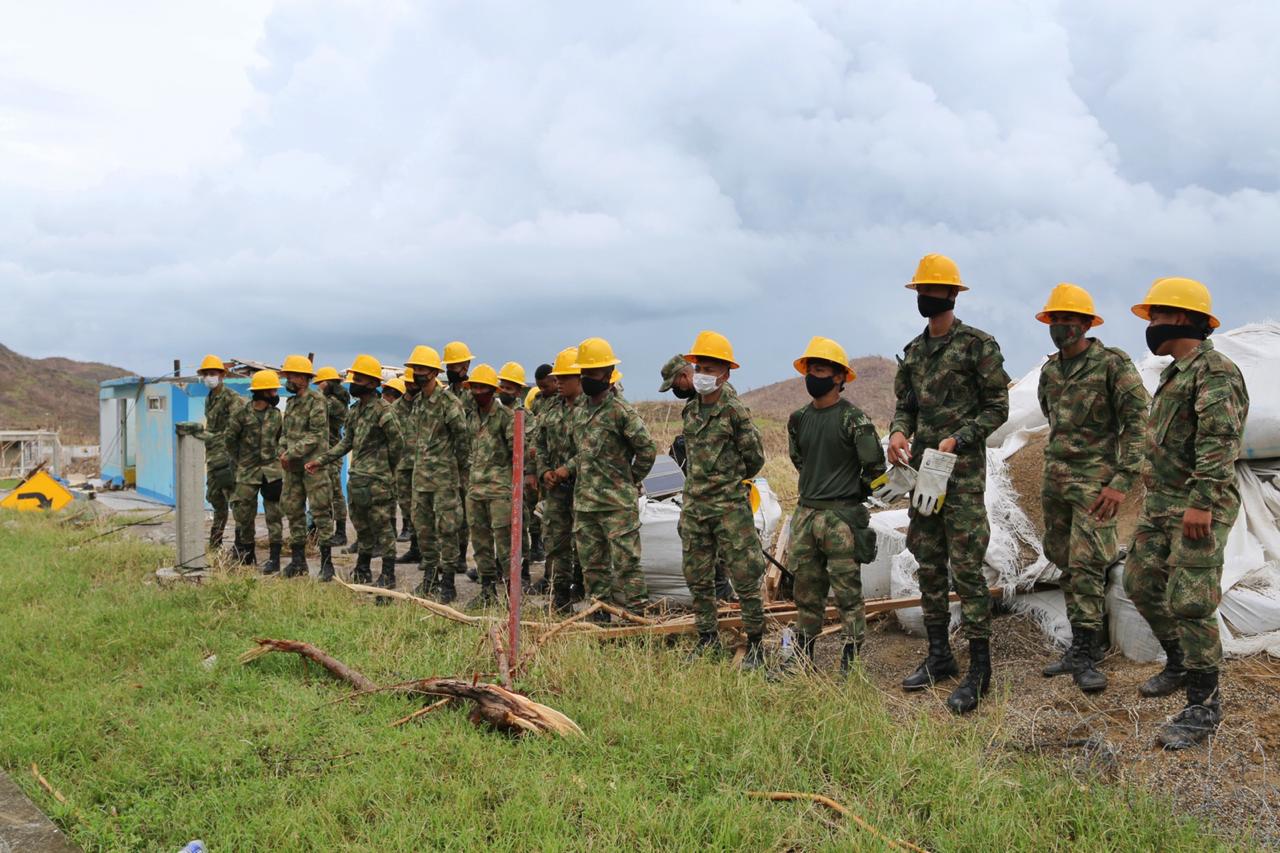 «Nosotros, con lo que hacemos, motivamos la tropa que está en el terreno ayudando a la gente damnificada por el huracán Iota. Hacemos parte del grupo de logística y somos, como buenos soldados, autosuficientes en medio de estas situaciones», agrega, mientras mirando a sus compañeros, y sin mirar lo que está haciendo, continúa con el afilado cuchillo cortando el complemento del almuerzo.