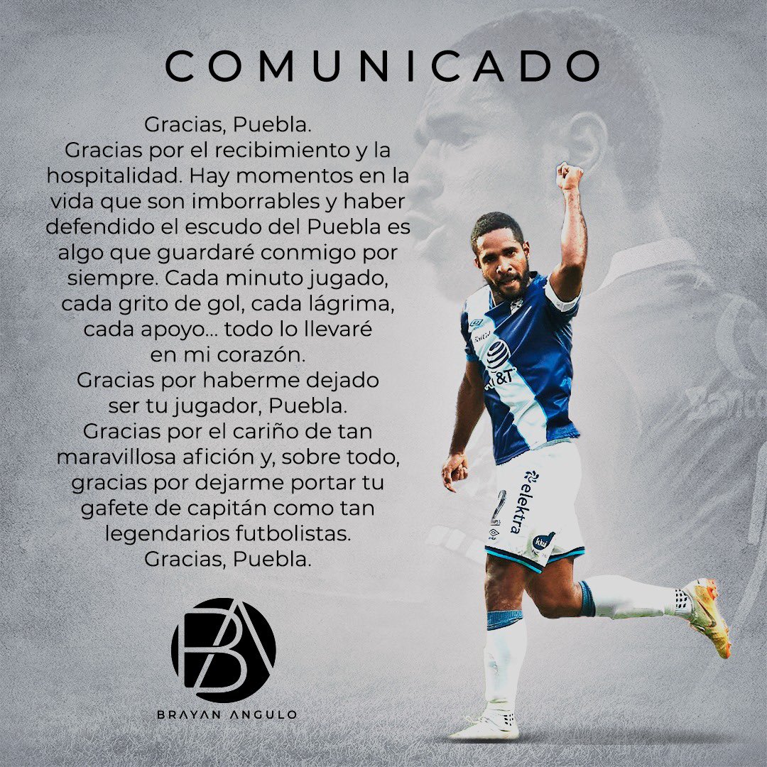 «Estoy listo para este nuevo reto, gracias a @Xolos por la confianza y la oportunidad. Gracias @ClubPueblaMX por todo, defender tus colores fue un orgullo para mí», escribió Angulo en su cuenta de Twitter.