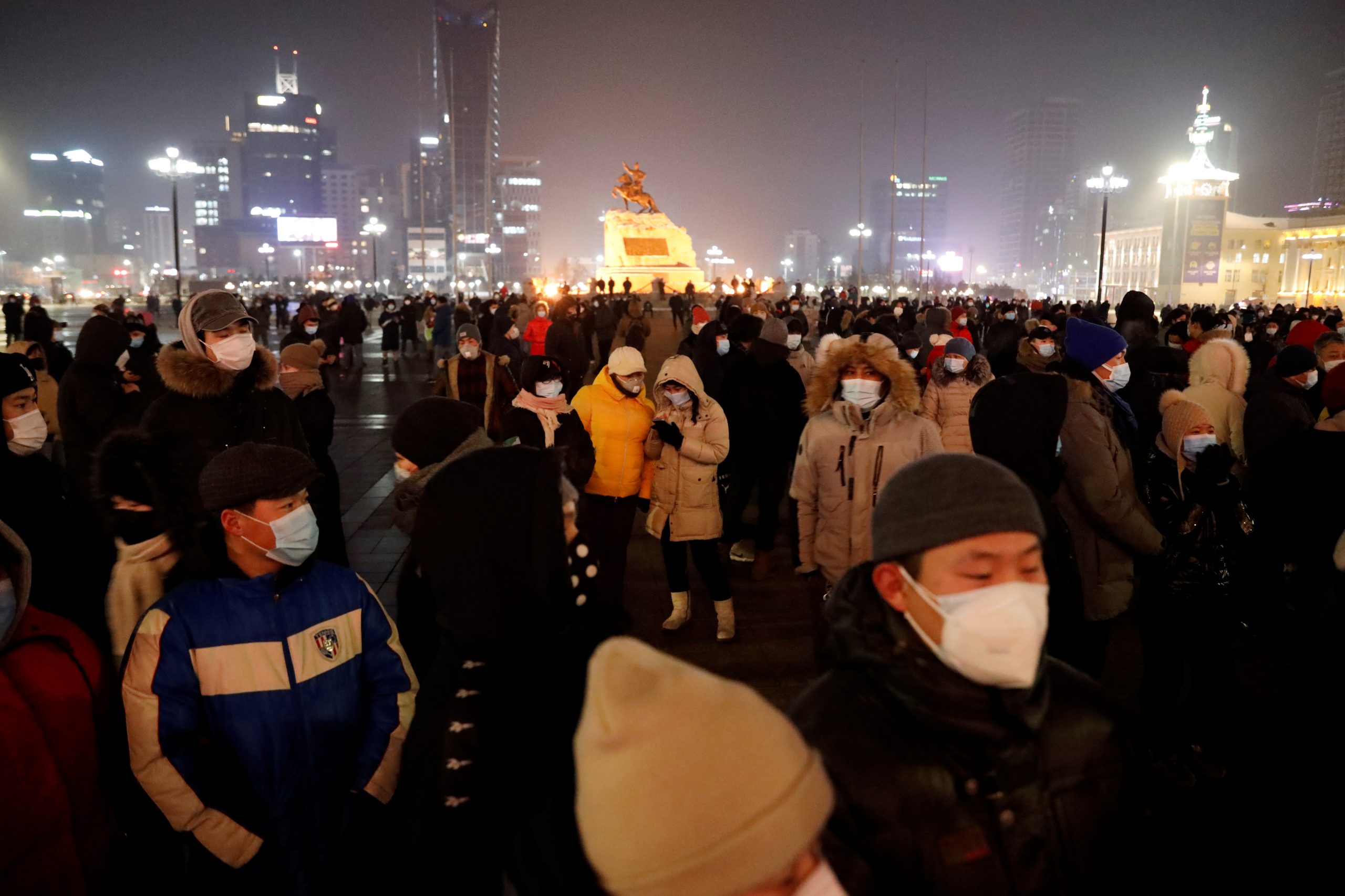 Una multitud reunida en la plaza Sükhbaatar durante una protesta contra la gestión del Gobierno mongol de la pandemia de COVID-19 en Ulán Bator, Mongolia, REUTERS/Anand Tumurtogoo