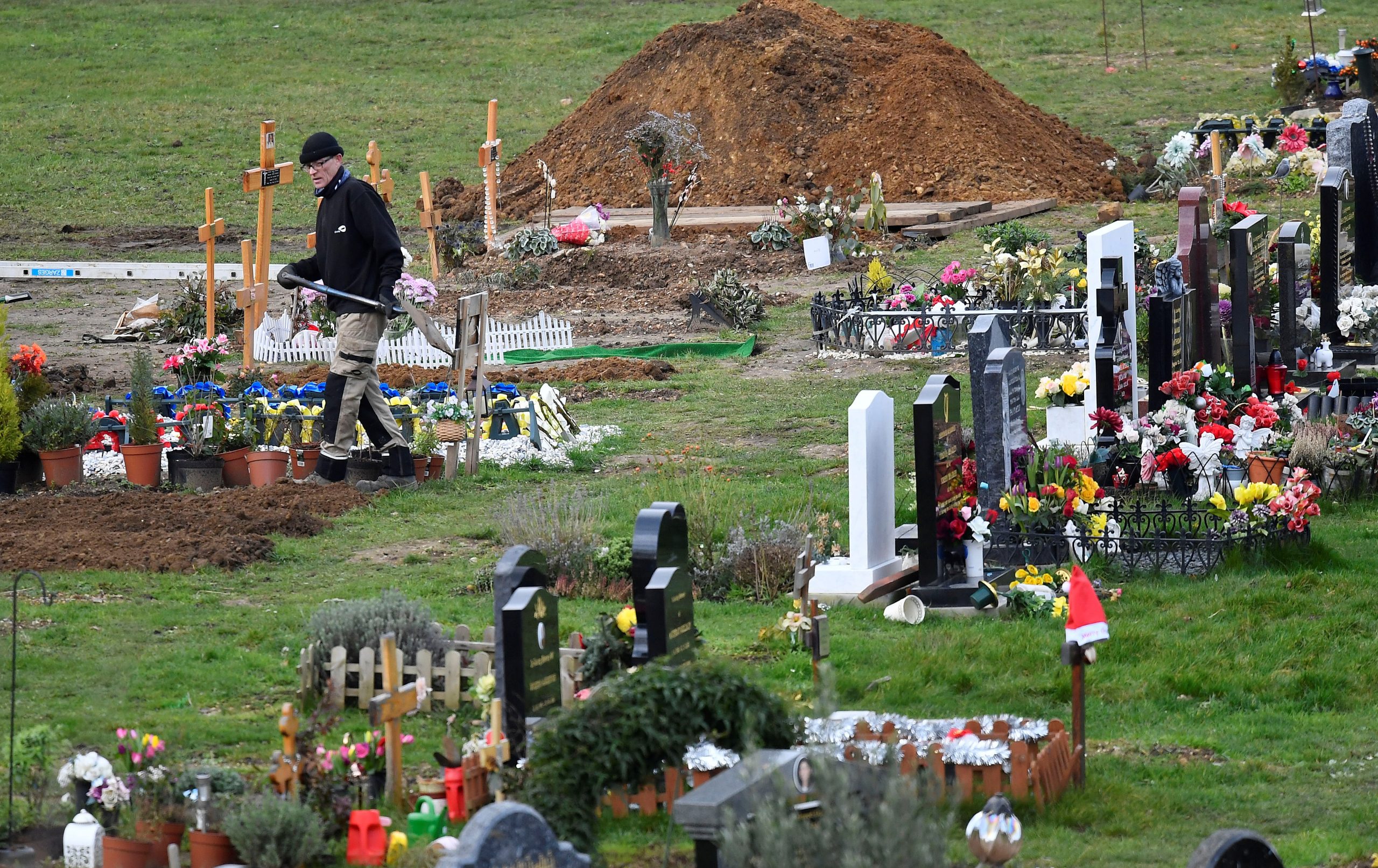 Un trabajador cava tumbas en un cementerio en Londres, Reino Unido,enero REUTERS/Toby Melville