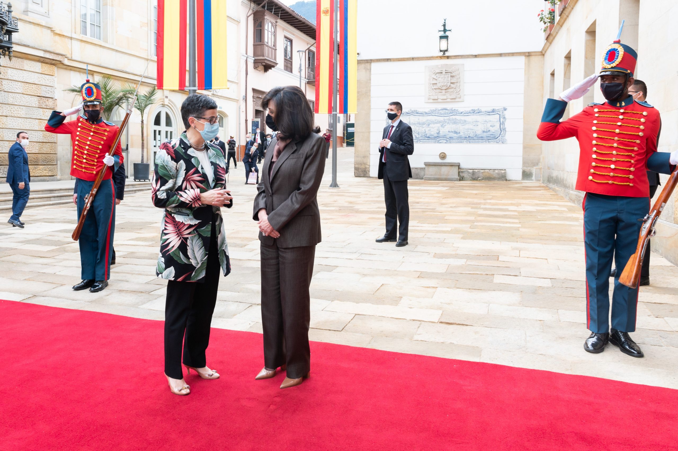 Por su parte, Blum ha agradecido la visita de la ministra española en un contexto de pandemia y ha resaltado la «estrecha relación» que mantienen los dos países. La canciller colombiana ha hecho particular hincapié en la importancia del acuerdo de cooperación firmado, ensalzando también el respaldo de España tanto al proceso de paz como a la asistencia a los migrantes venezolanos.