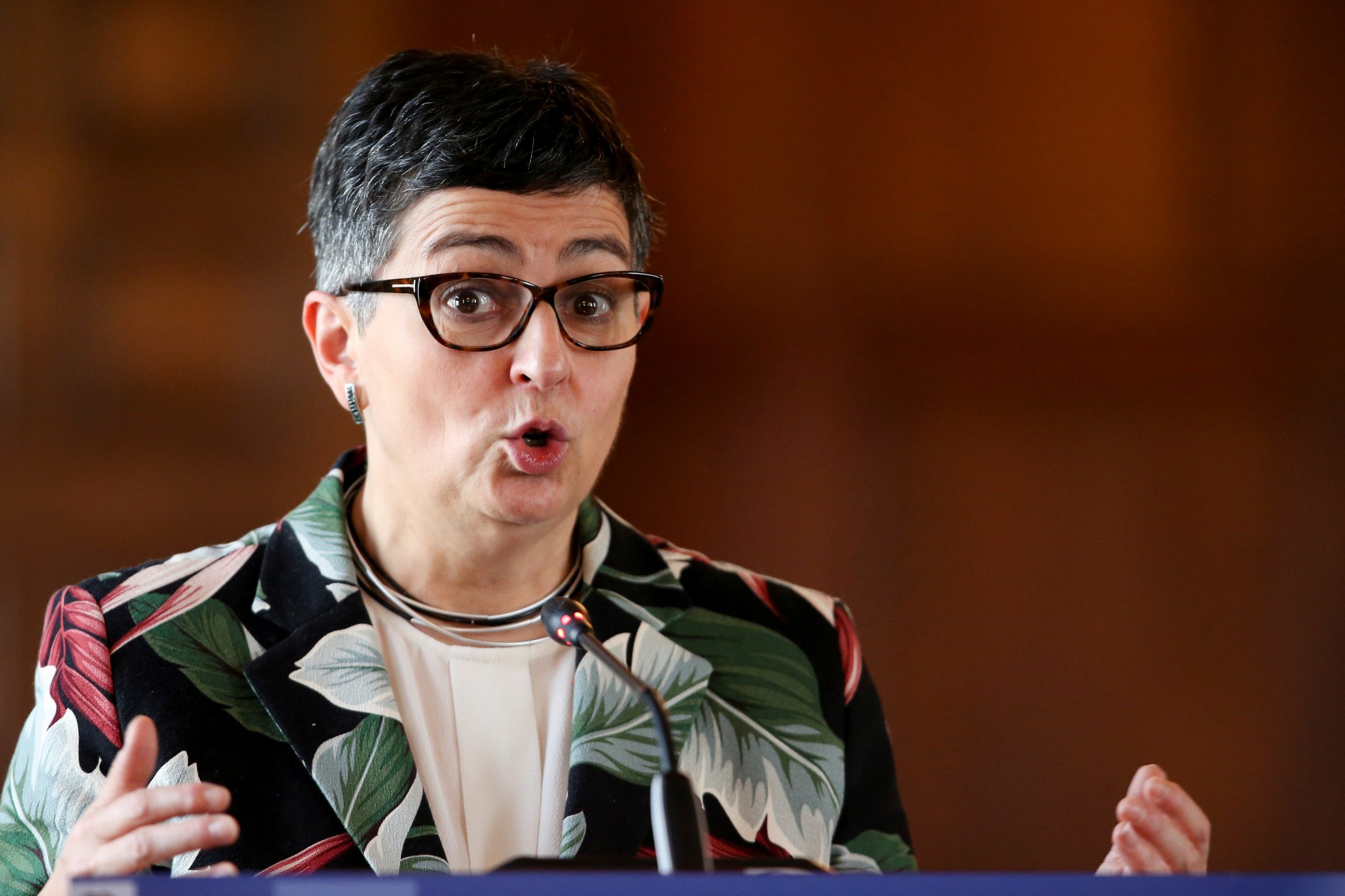 La ministra de Asuntos Exteriores de España, Arancha González, habla durante un encuentro con los medios de comunicación en el Palacio de San Carlos en Bogotá, Colombia, 26 de febrero, 2021. REUTERS/Luisa González