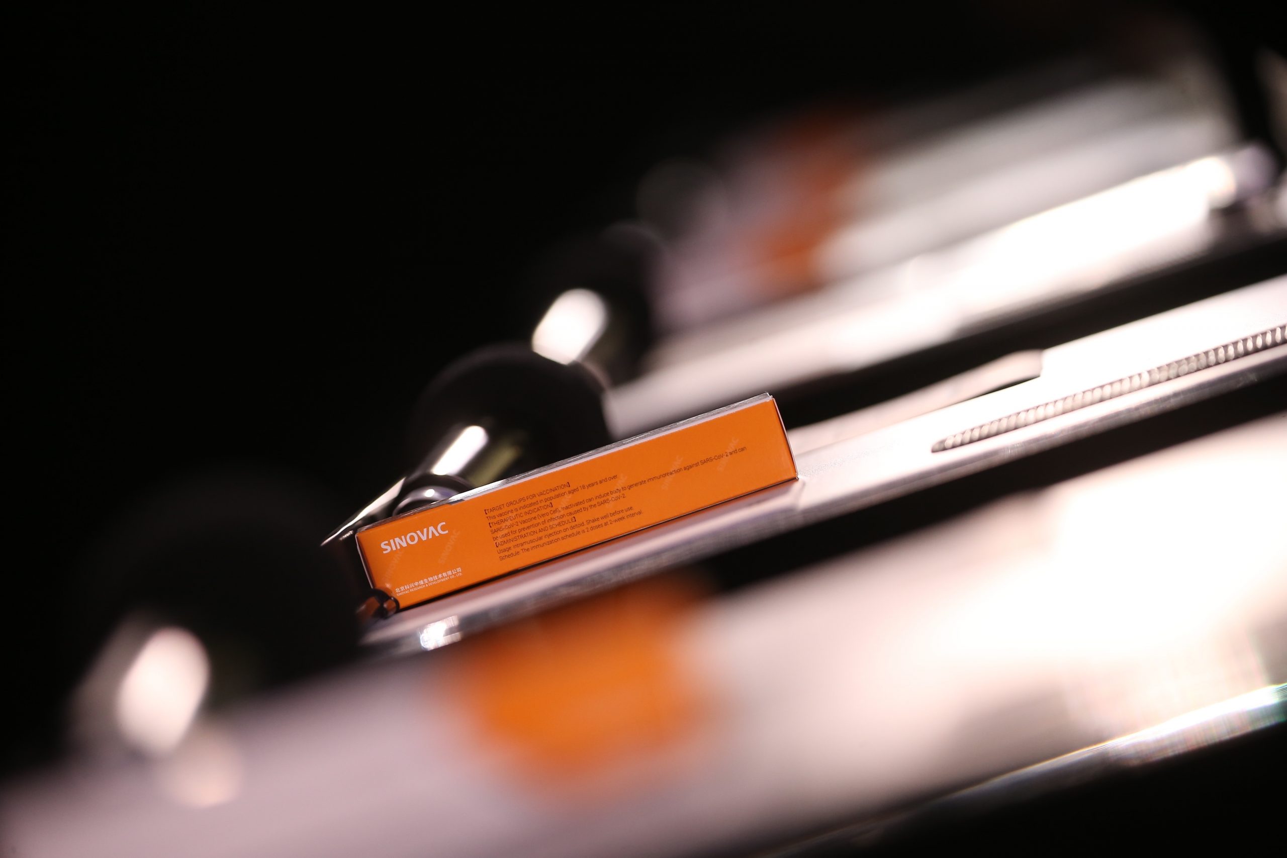 Caja de la vacuna Coronavac fabricada en el Instituto Butantan en Brasil .Foto Paulo Lopes / Zuma Press / Conta / Europa Press