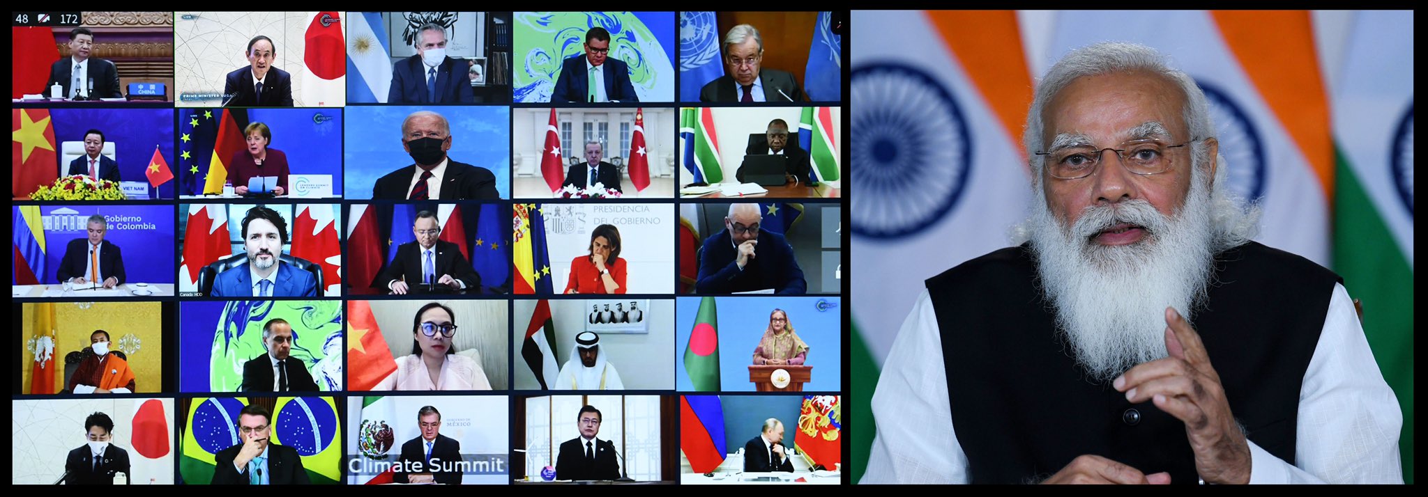 Líderes mundiales aparecen en la pantalla durante una Cumbre del Clima virtual, vista desde la Sala Este de la Casa Blanca en Washington, Estados Unidos. 22 de abril de 2021. REUTERS/Tom Brenner