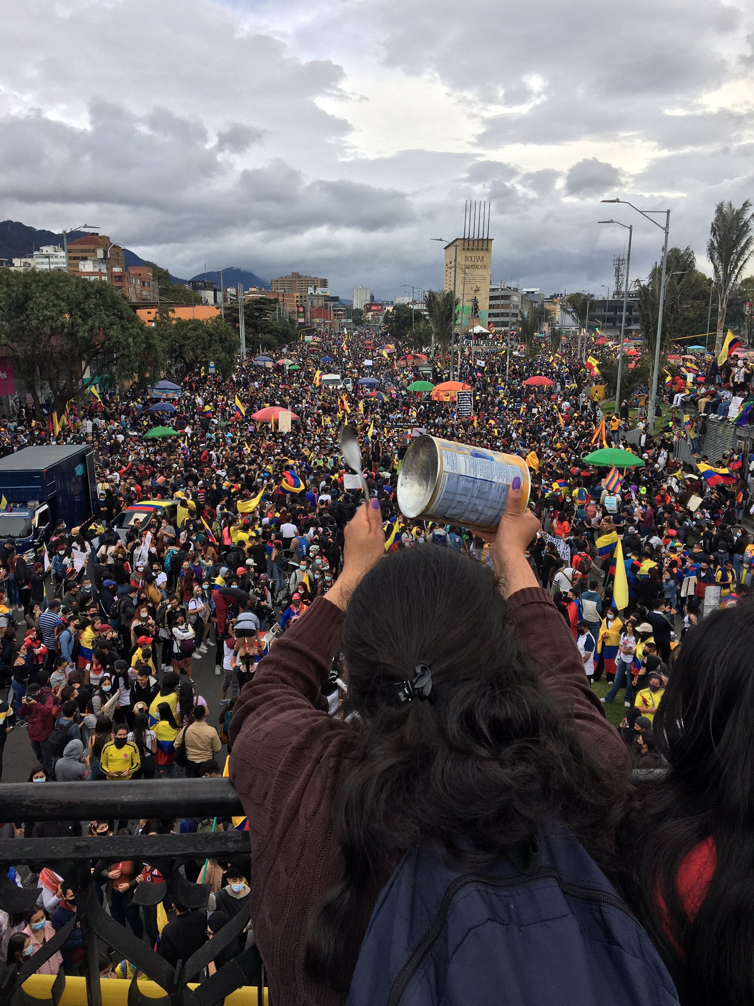 Al menos 10.000 manifestantes se reúnen en Bogotá en una nueva jornada de protestas.Foto vía Twiter@MCHeisel