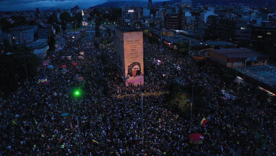 Los medios locales han recogido imágenes de una numerosa concentración en el monumento de Los Héroes durante todo el sábado que se ha desarrollado de forma pacífica hasta que en las últimas horas las autoridades han actuado debido a que este Monumento ha sido incendiado. Según ‘El Espectador’, se reunieron más de 20.000 personas.